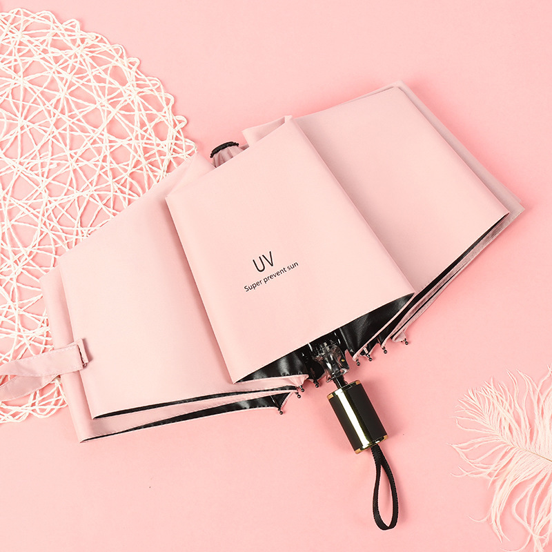 우산 트리플 접이식 두꺼운 검은 고무 태양 보호 차양 모리 스타일 태양 우산 UV 9 합판 이중 사용 우산