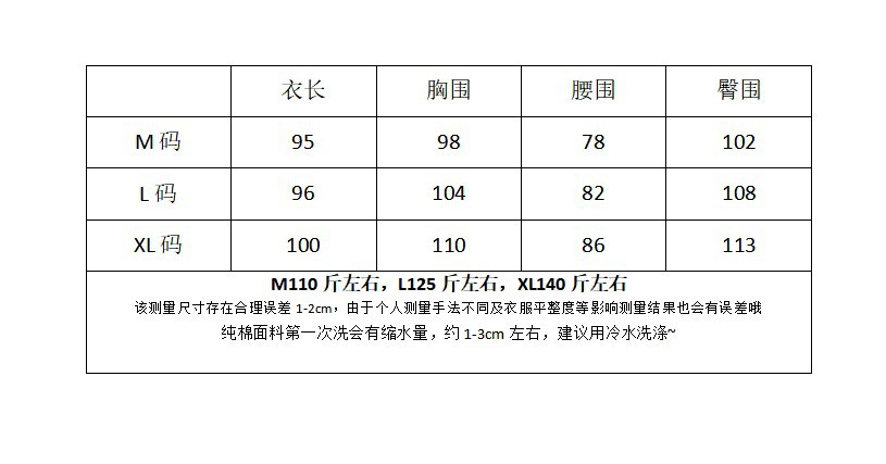 吊带裙尺码表
