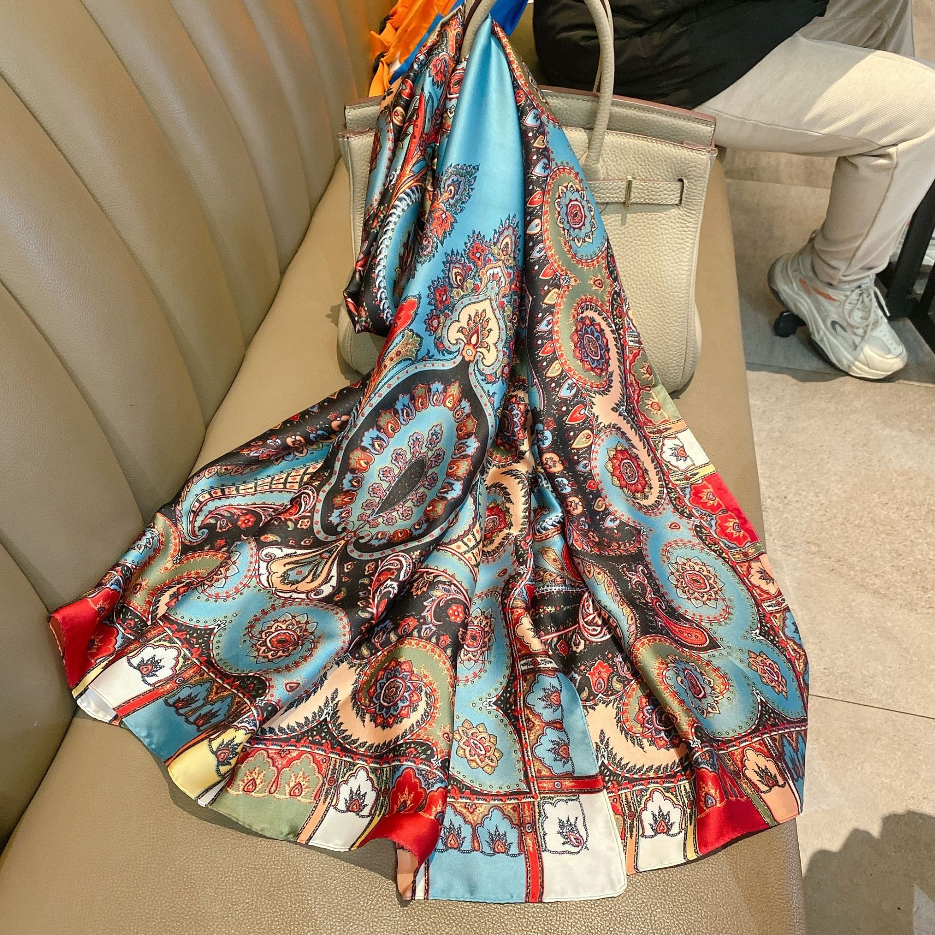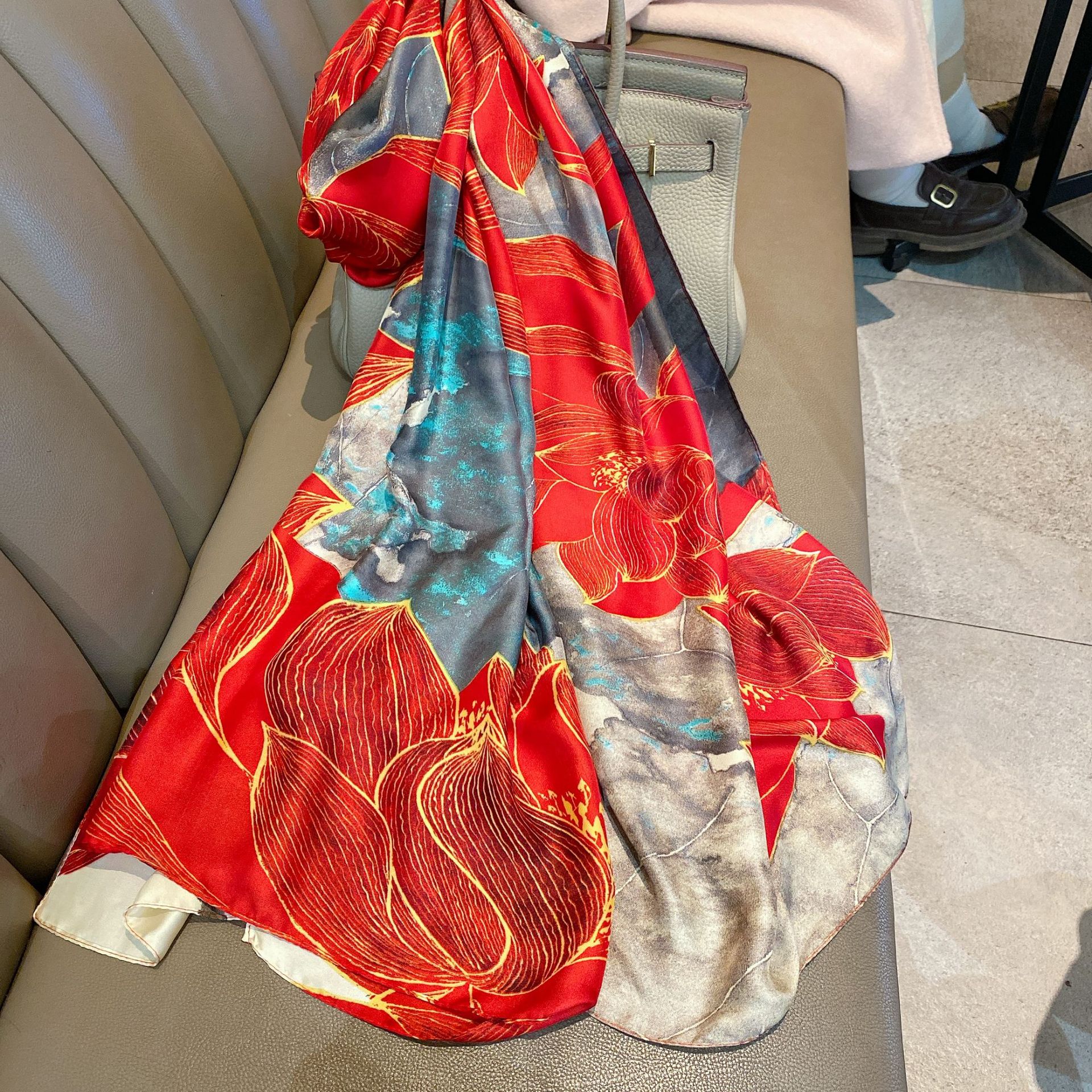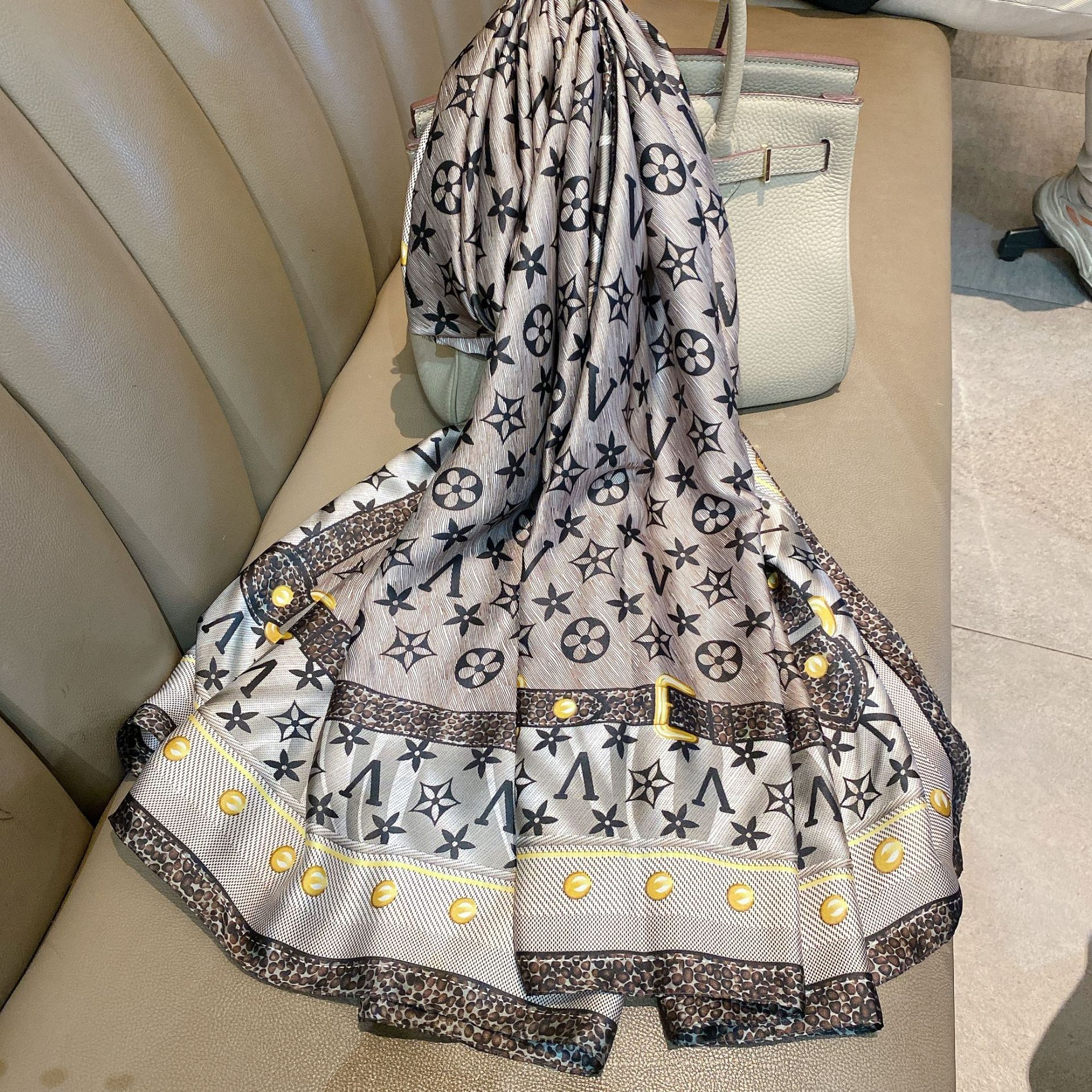 2022 새로운 빈티지 토템 꽃 90x180 실크 대형 목도리 얇은 장식 선 스크린 스카프 스카프스토어 가기