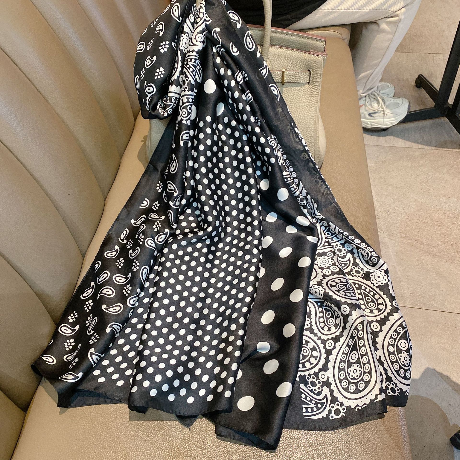 2022 새로운 빈티지 토템 꽃 90x180 실크 대형 목도리 얇은 장식 선 스크린 스카프 스카프