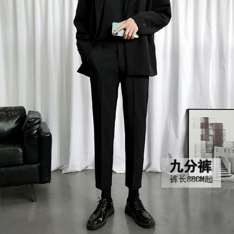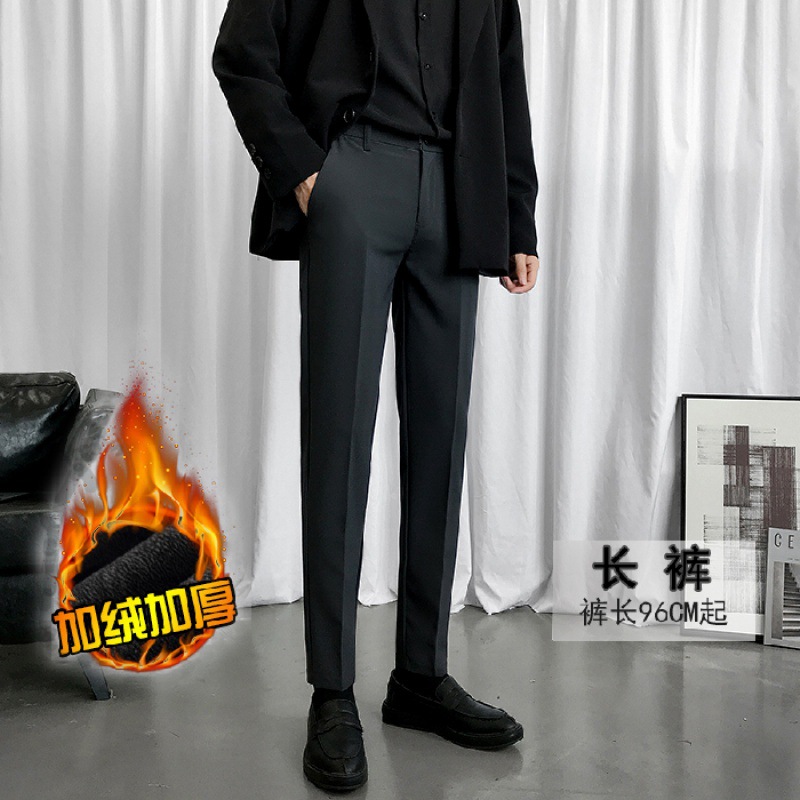 웨스턴 바지 남성 펜던트 기모 발목 길이 바지 슬림핏 발 한국 유행 가을과 겨울 캐주얼 바지 남성 스트레이트 세트 바지