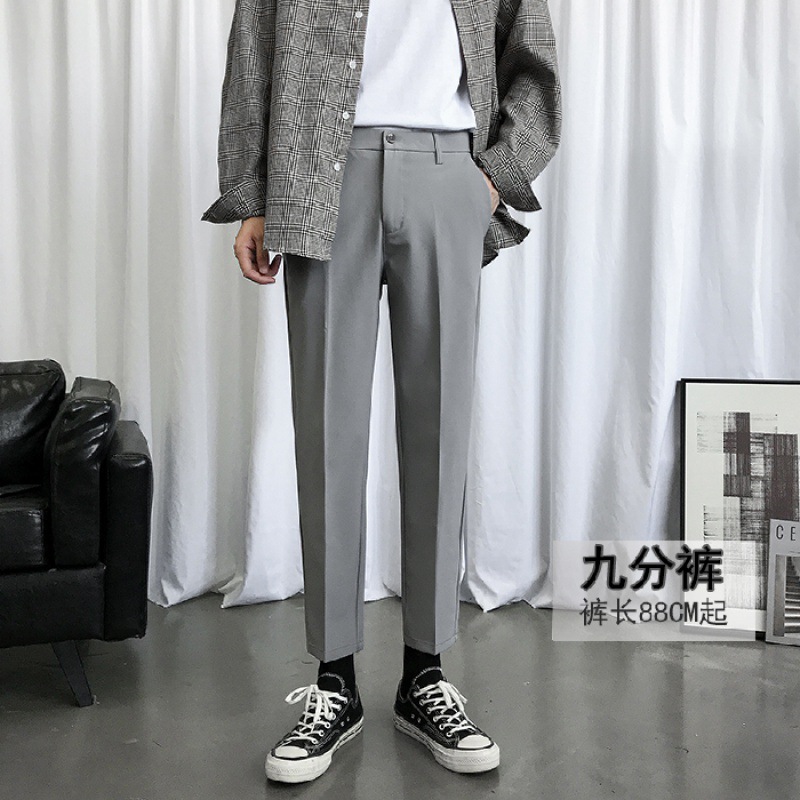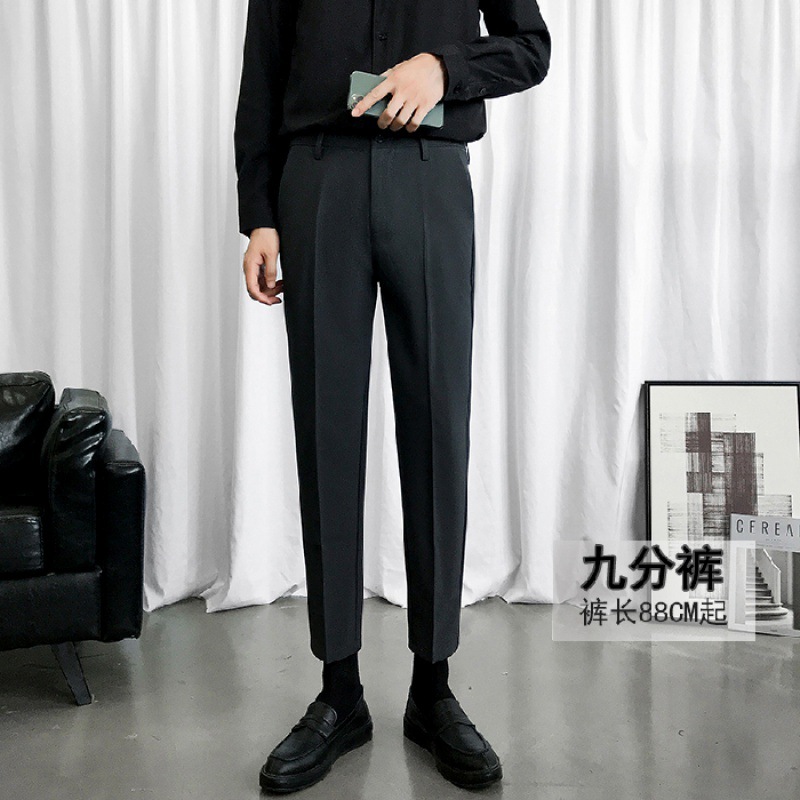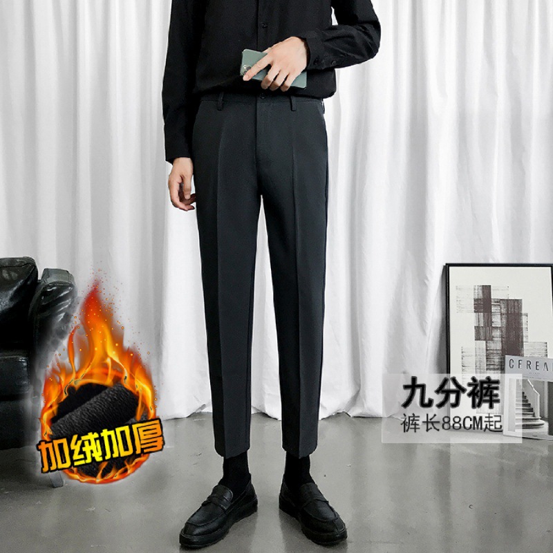 웨스턴 바지 남성 펜던트 기모 발목 길이 바지 슬림핏 발 한국 유행 가을과 겨울 캐주얼 바지 남성 스트레이트 세트 바지스토어 가기
