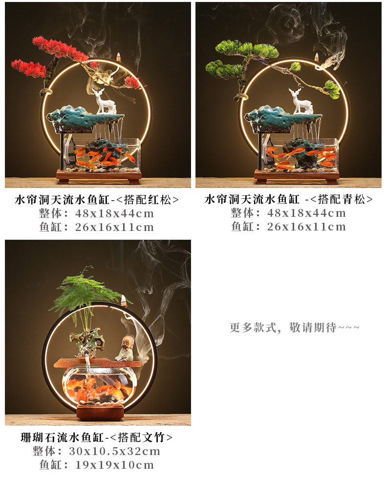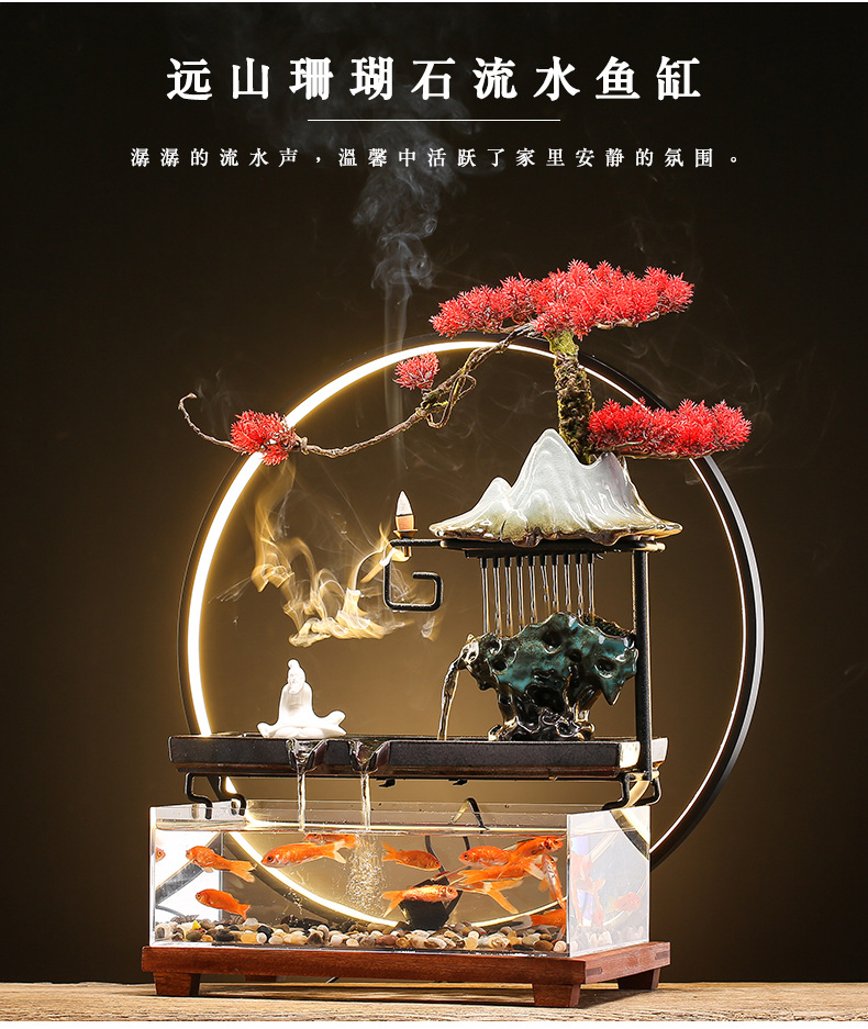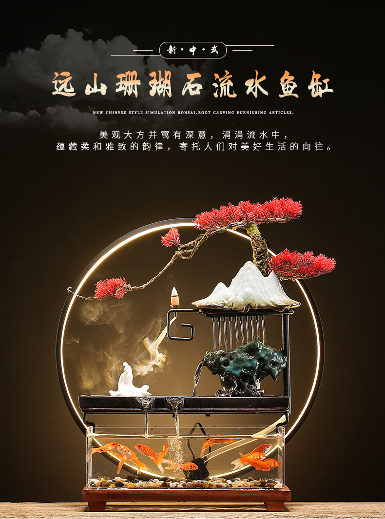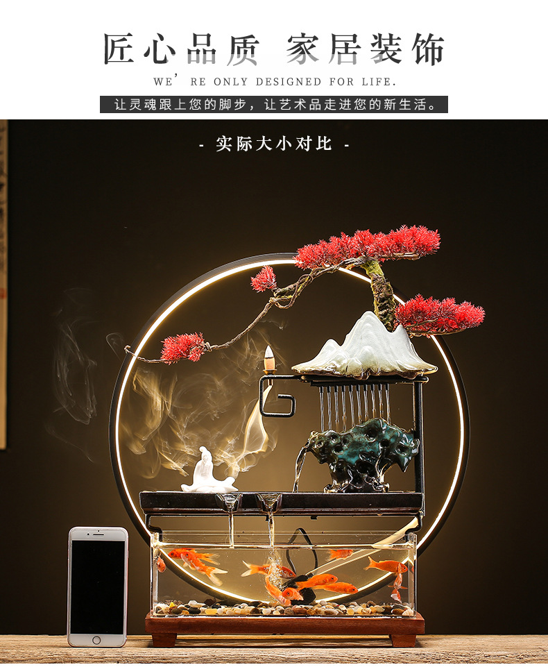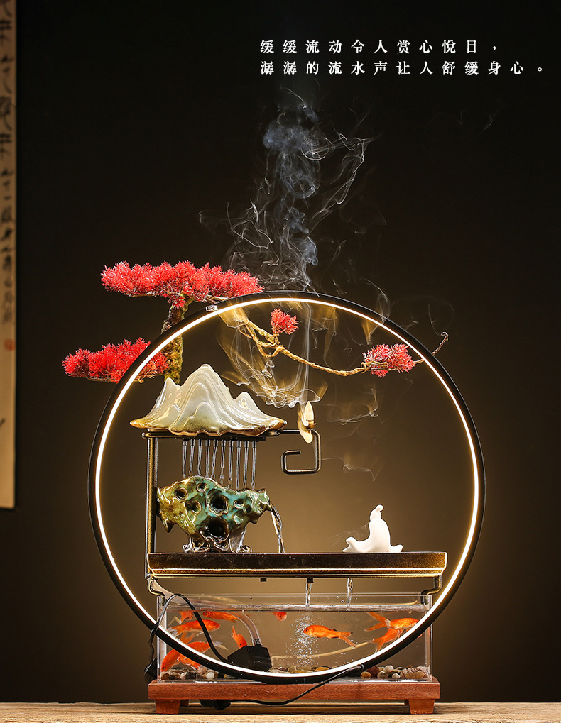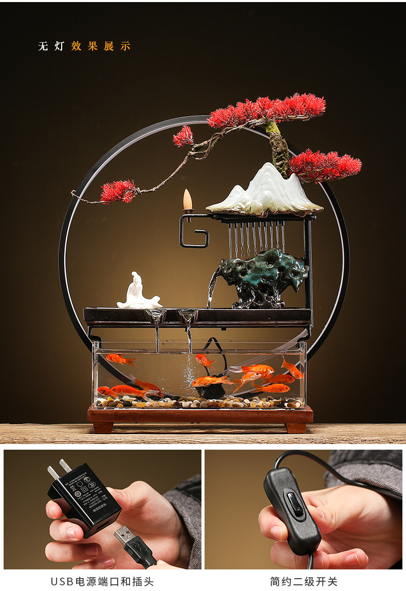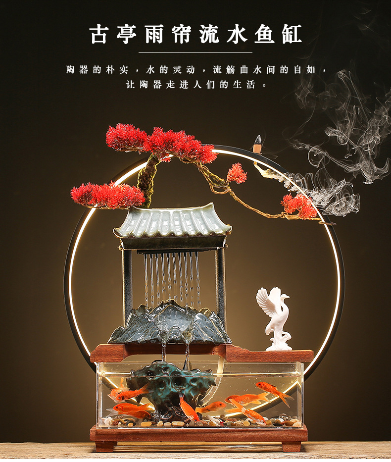 새로운 중국 선 순환 물 장식 분수 어항 비 커튼 램프 원형 창조적 인 홈 오피스 데스크탑 풍경스토어 가기