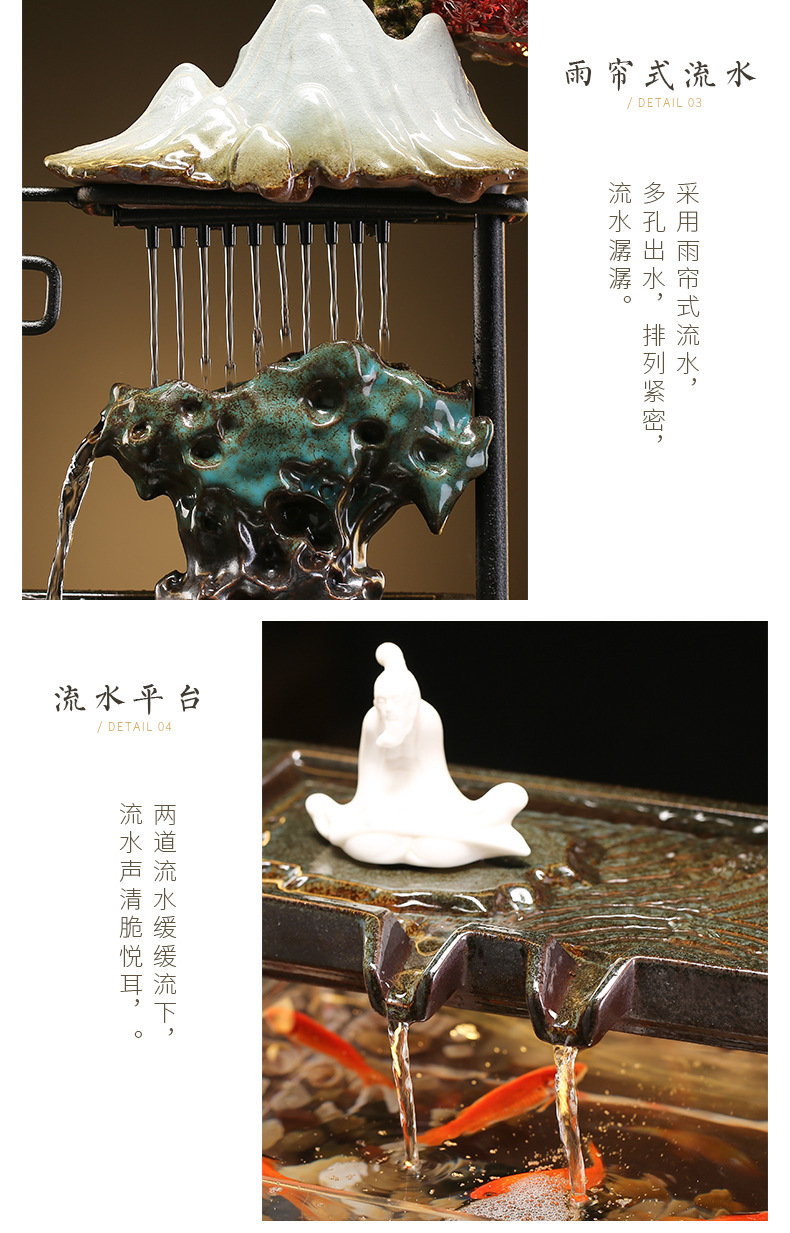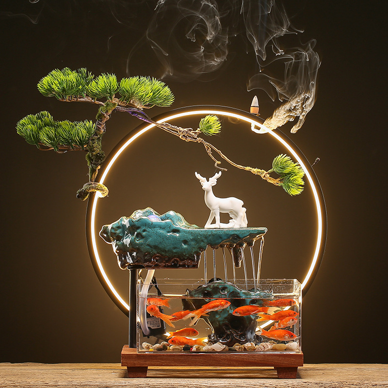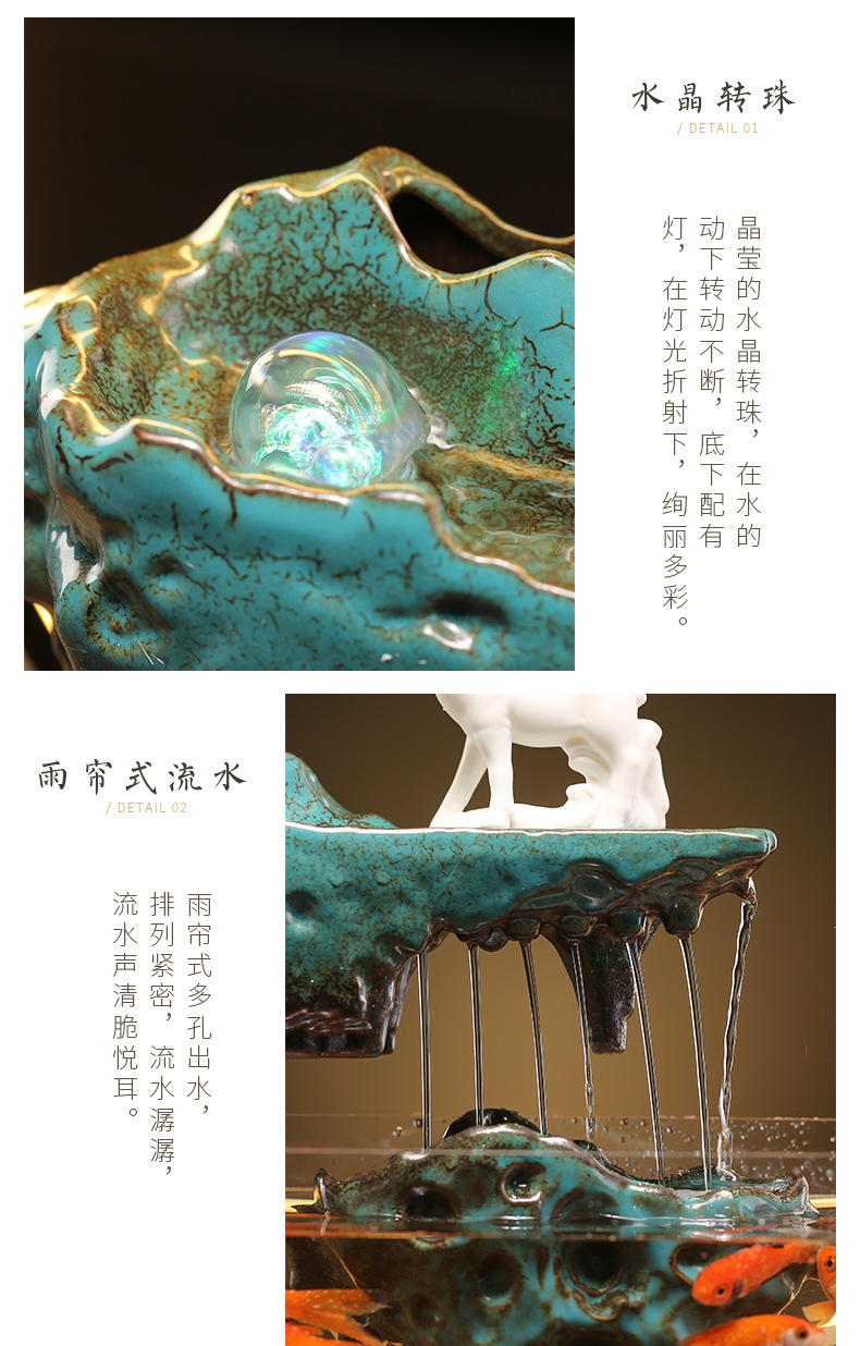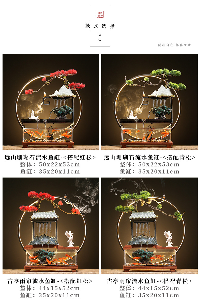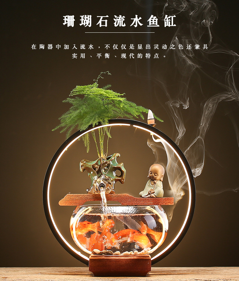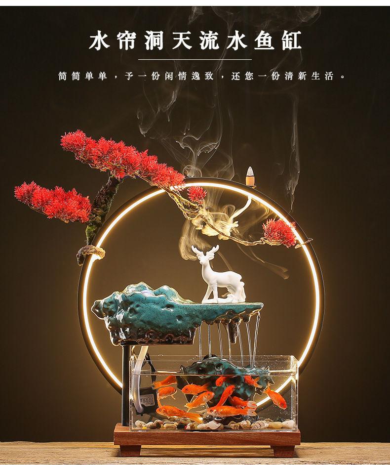 새로운 중국 선 순환 물 장식 분수 어항 비 커튼 램프 원형 창조적 인 홈 오피스 데스크탑 풍경스토어 가기