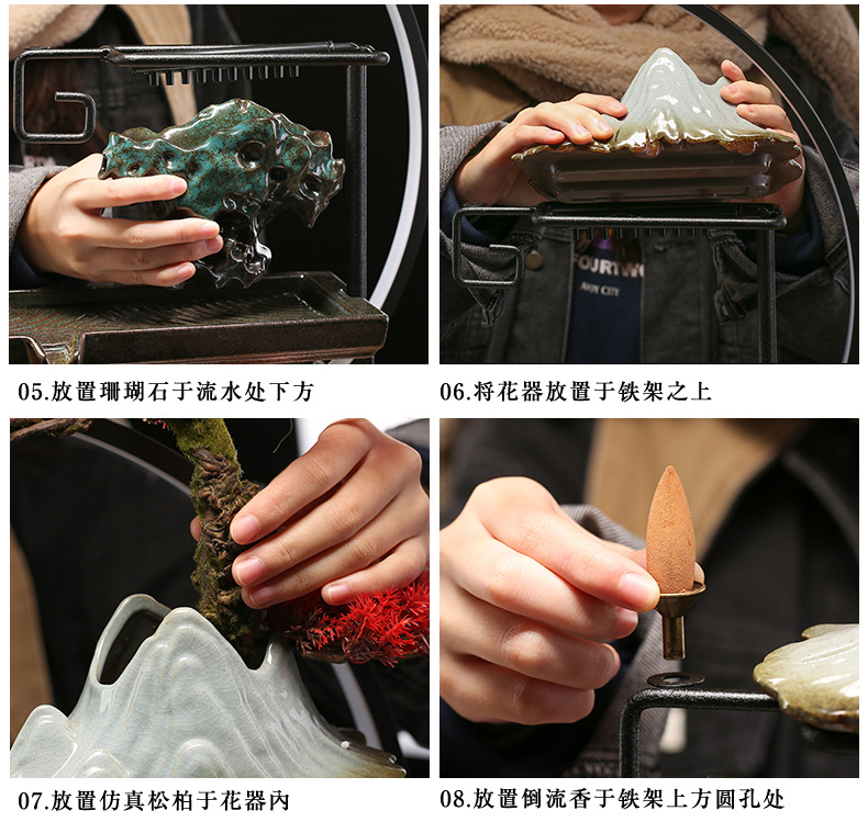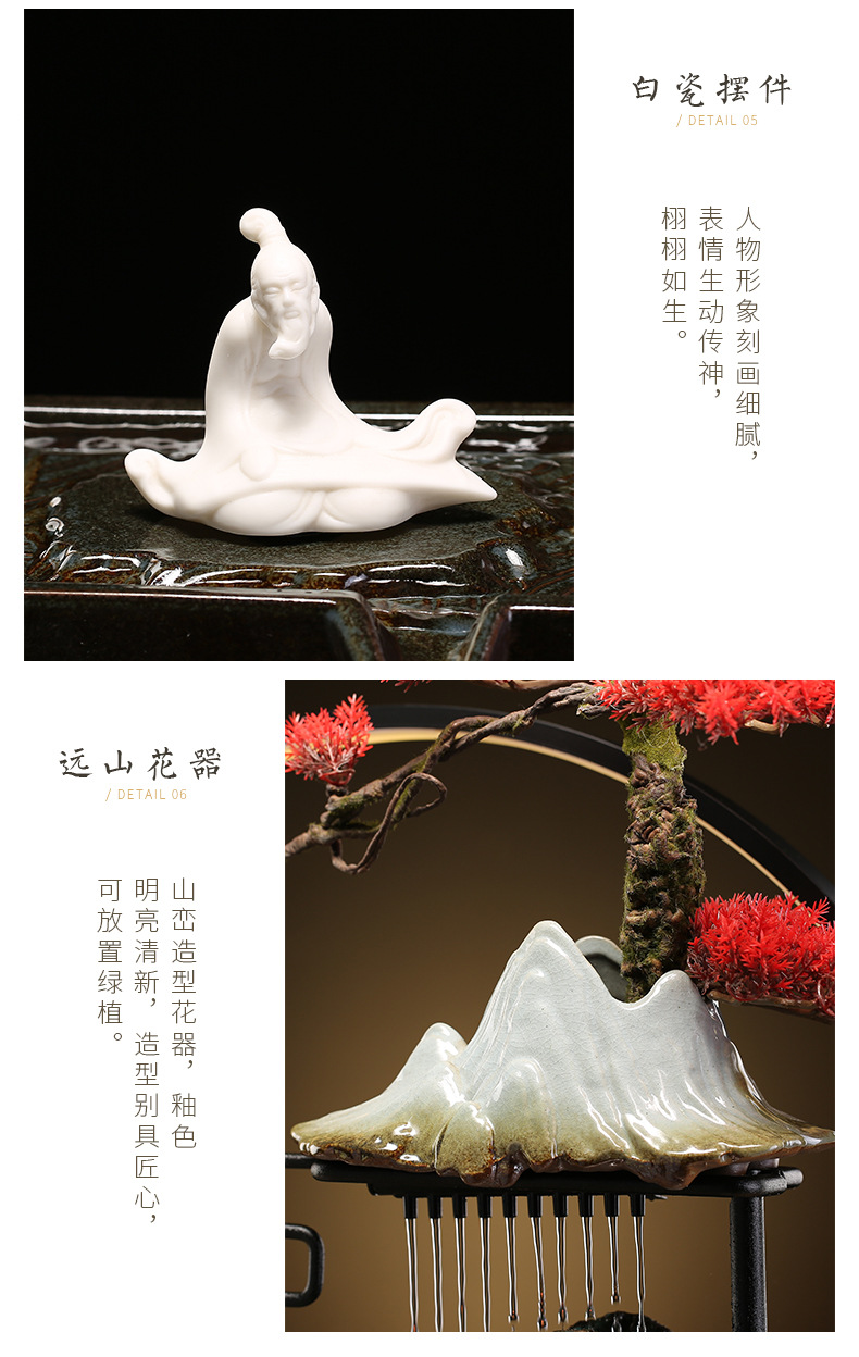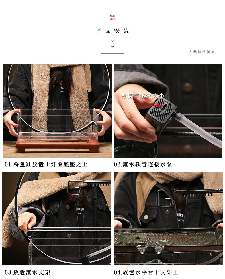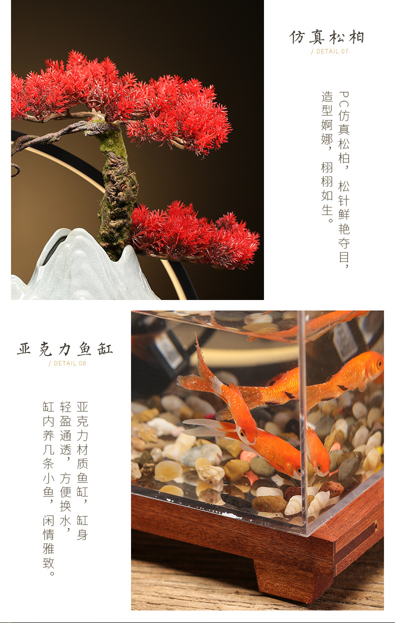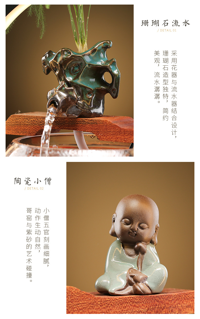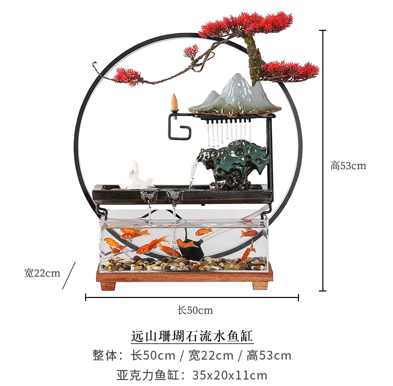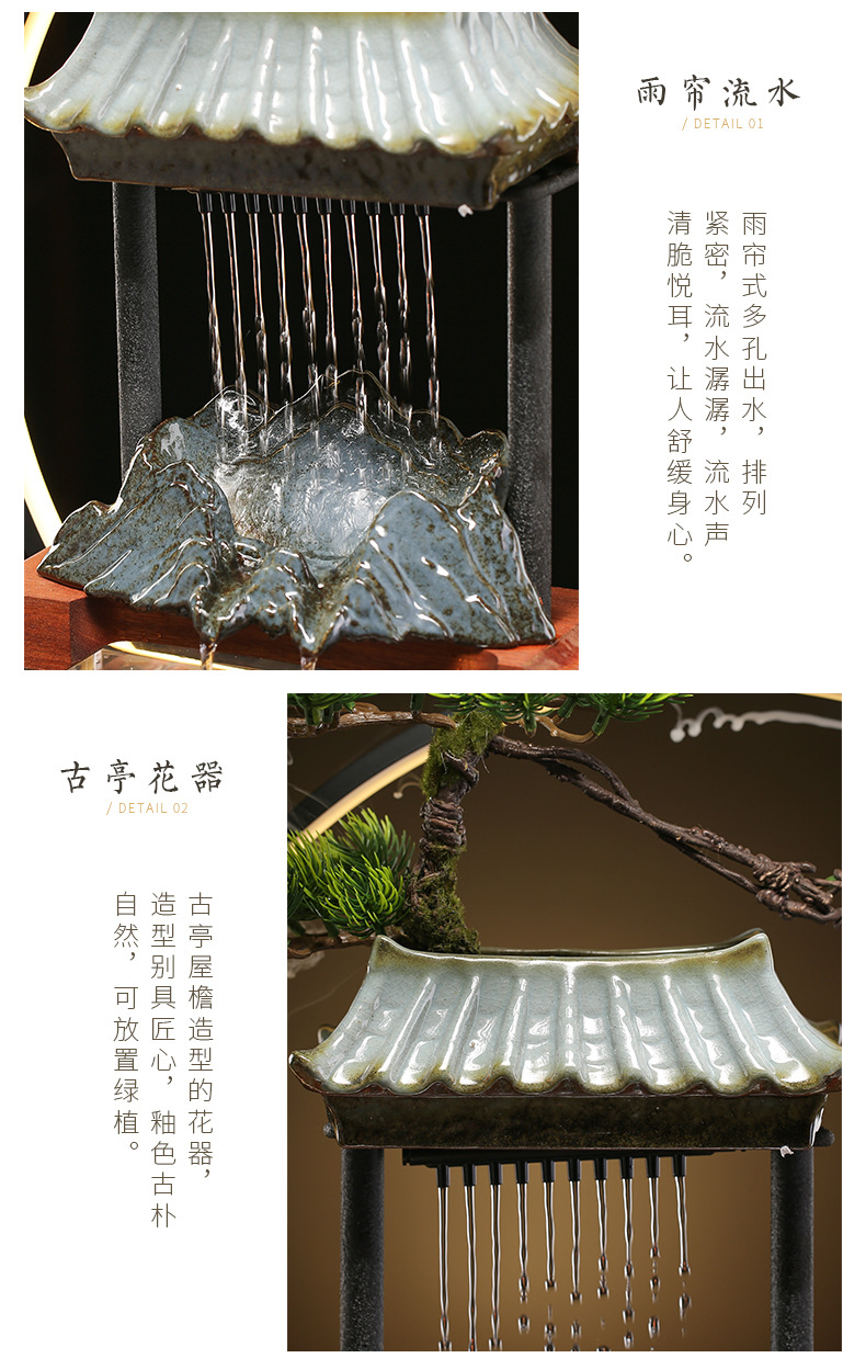 새로운 중국 선 순환 물 장식 분수 어항 비 커튼 램프 원형 창조적 인 홈 오피스 데스크탑 풍경스토어 가기