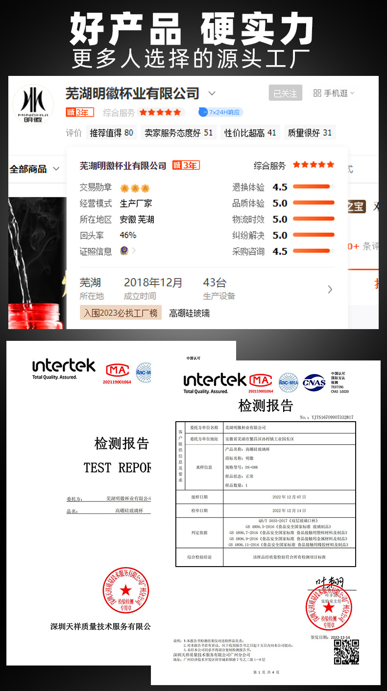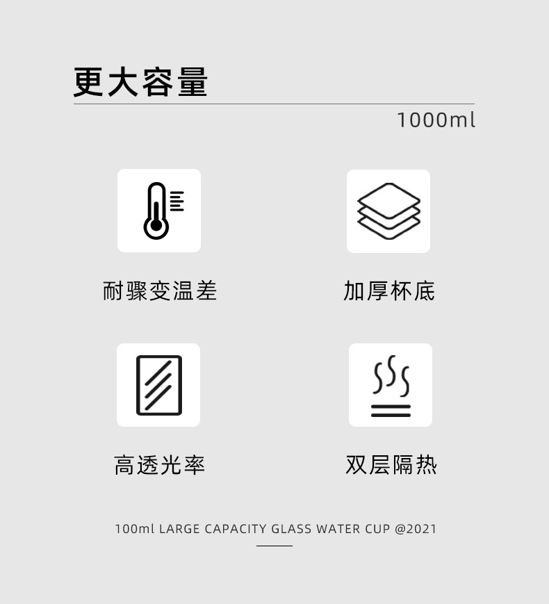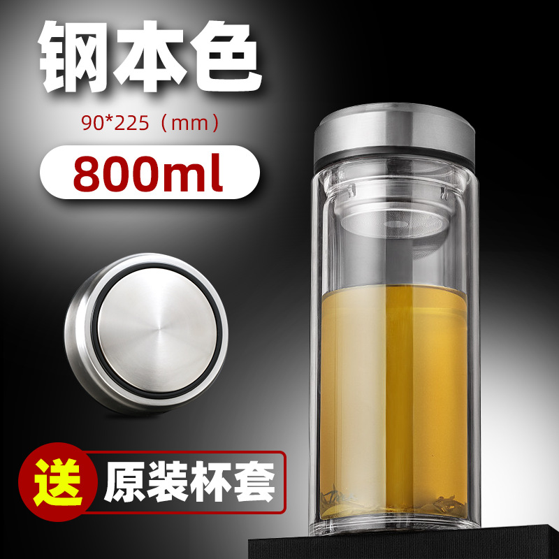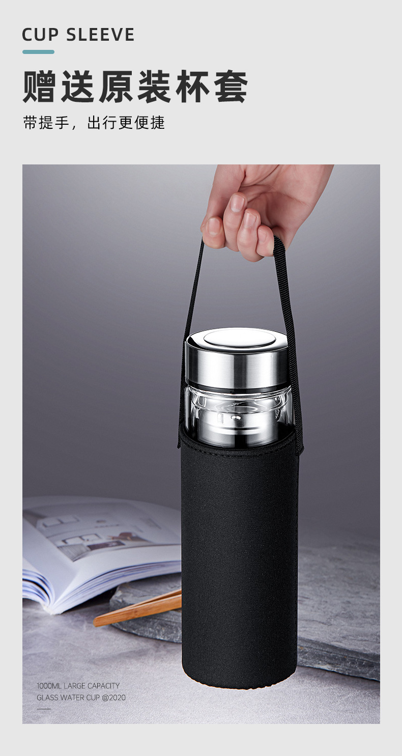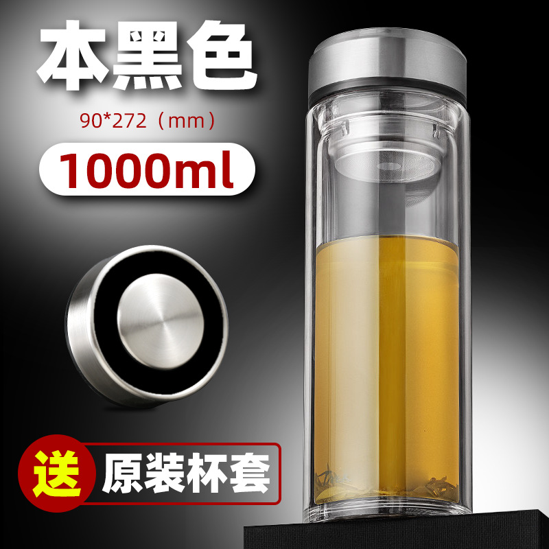 대용량 1000ml 2 중 유리 고온 방폭 야외 물컵 뚜껑이 있는 남성용 투명 티컵스토어 가기