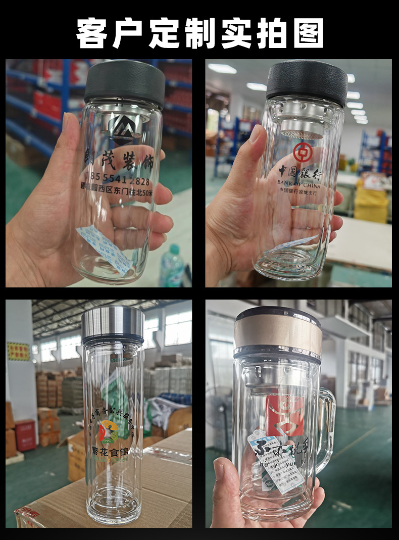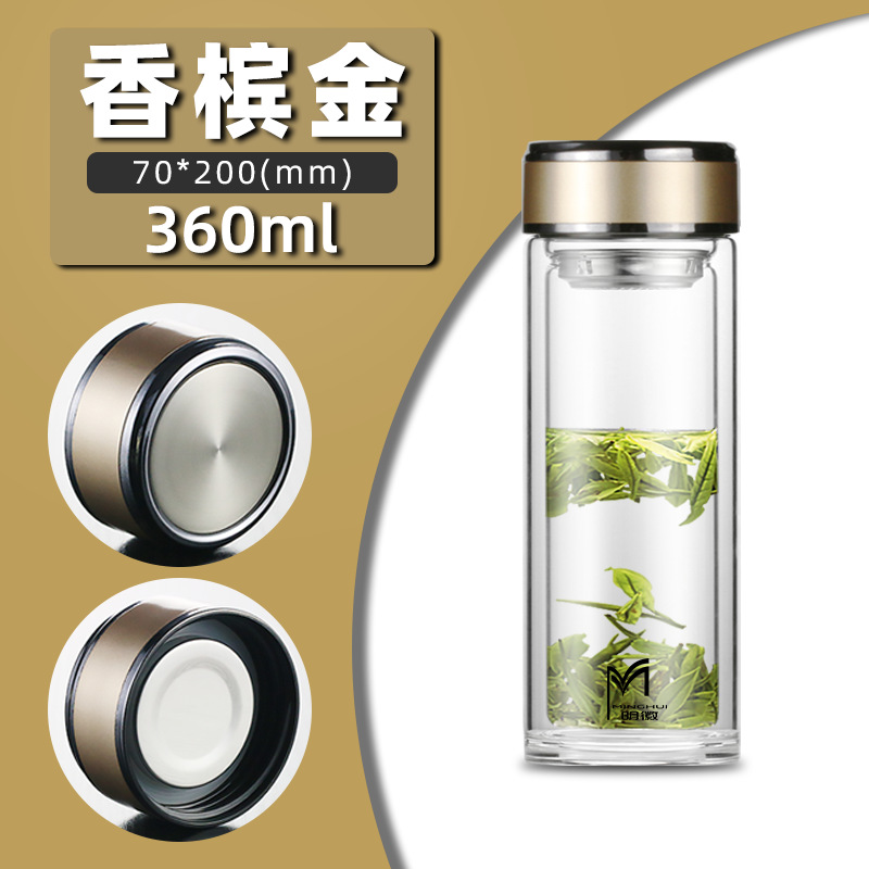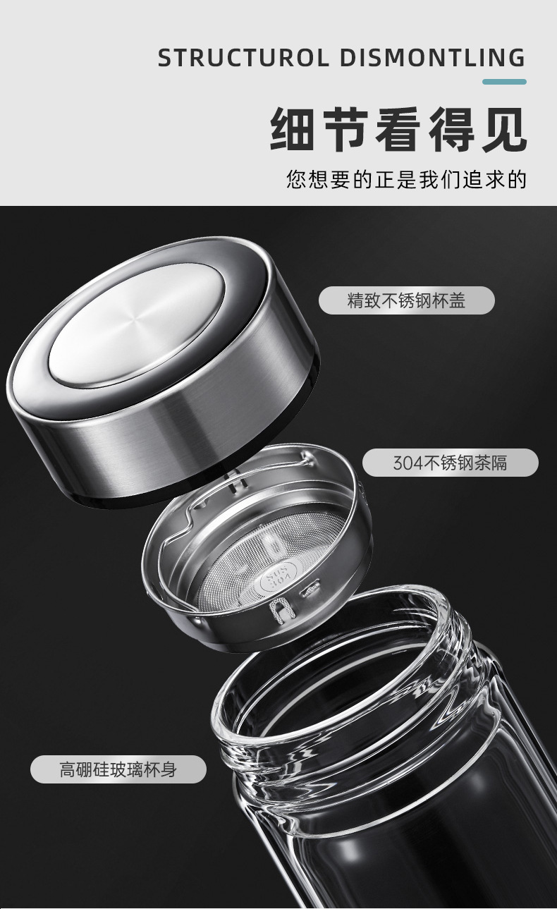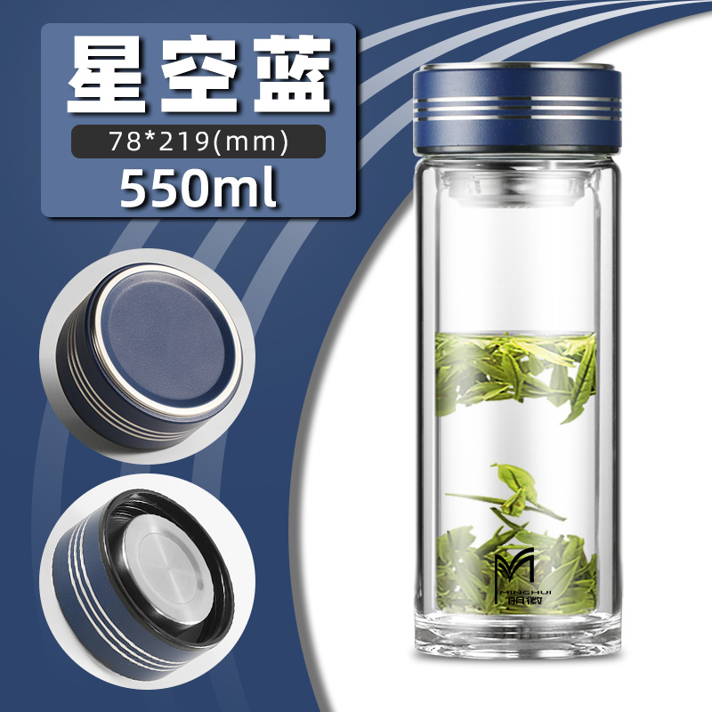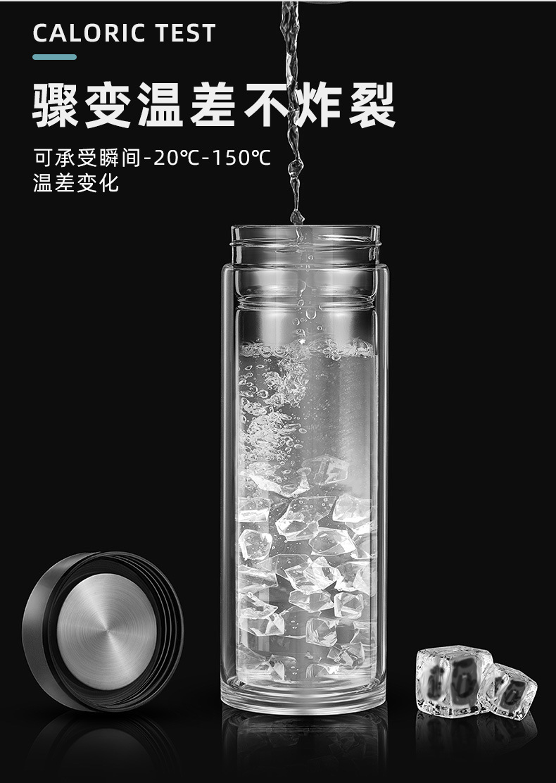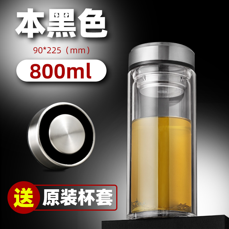 대용량 1000ml 2 중 유리 고온 방폭 야외 물컵 뚜껑이 있는 남성용 투명 티컵