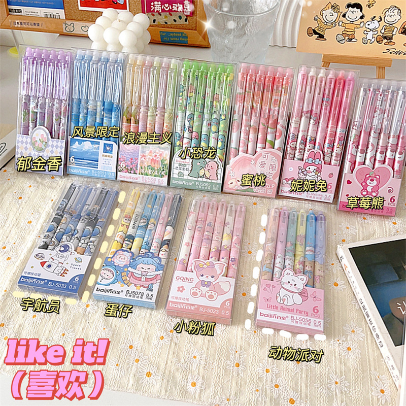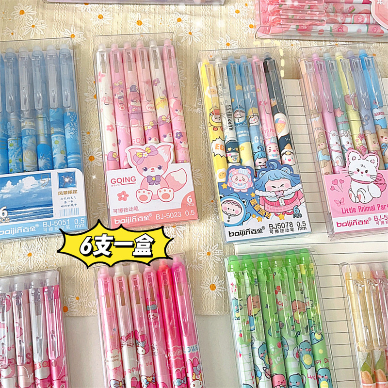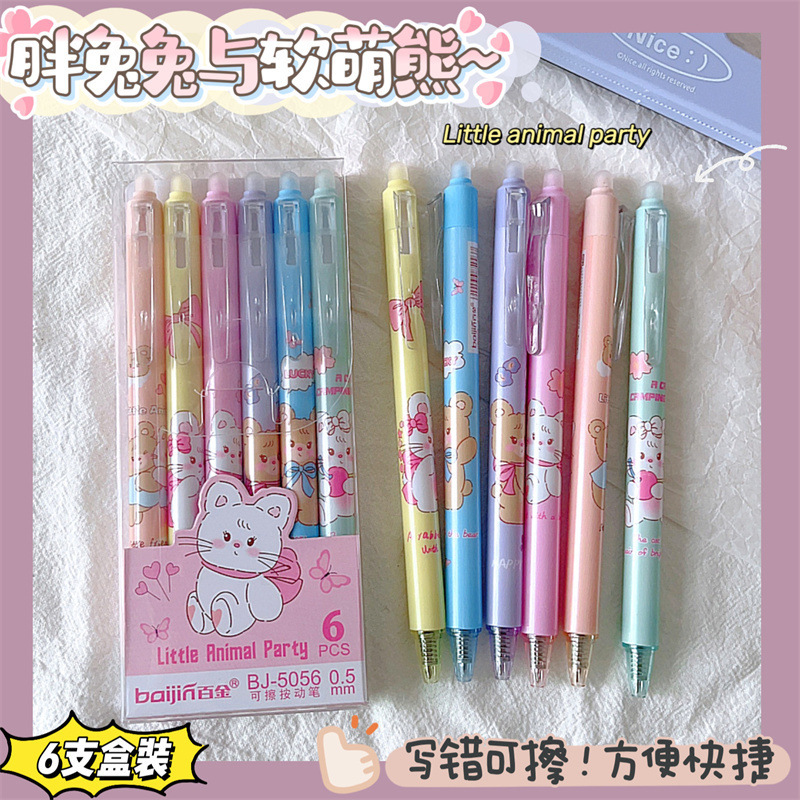 지울 수 있는 펜 0.5 초등학생용 누름식 젤 펜 검정색 소녀용 멋진 디자인 다양한 레트로 곰돌이스토어 가기