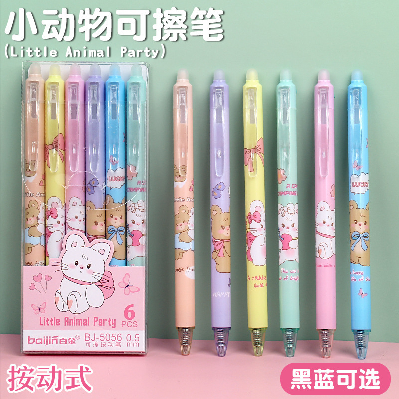 지울 수 있는 펜 0.5 초등학생용 누름식 젤 펜 검정색 소녀용 멋진 디자인 다양한 레트로 곰돌이