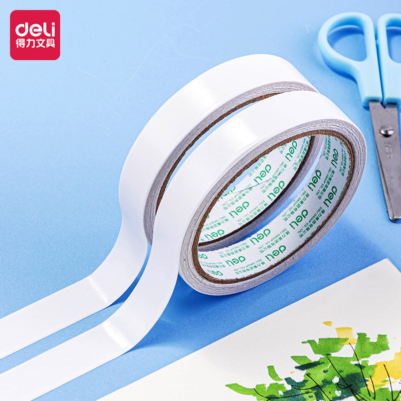 델리 30406 양면테이프 18mm*10y 면지 테이프 강력 접착력 쉽게 떼어낼 수 있는 넓은 양면테이프 사무용 도매