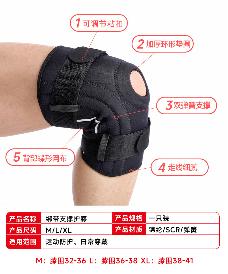 남성과 여성을위한 재고 스트랩 미끄럼 방지 스프링 지원 무릎 패드 야외 등산 및 사이클링 피트니스 가압 스포츠 무릎 패드 커버