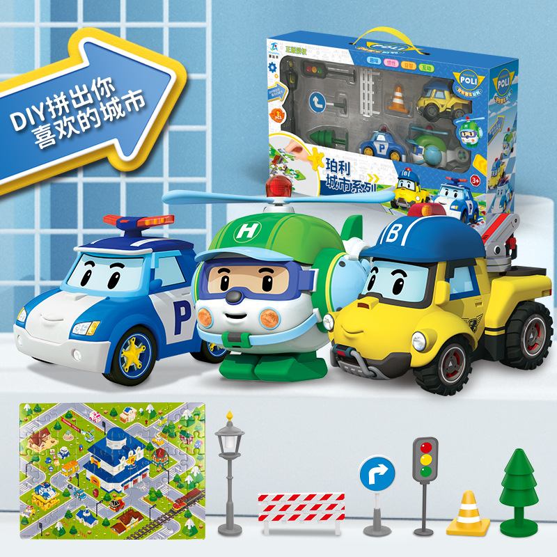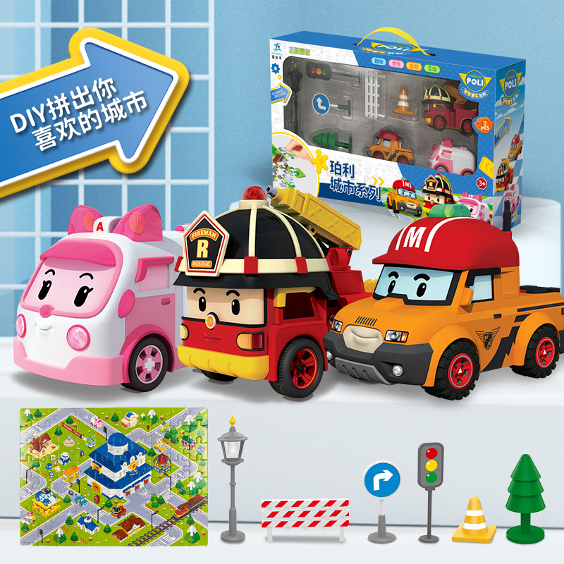 정품 펄리 경찰차 관성 장난감 자동차 로이 화재 Hailey 헬리콥터 POLI 재미있는 만화 장난감 자동차스토어 가기