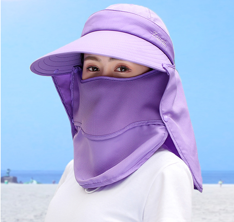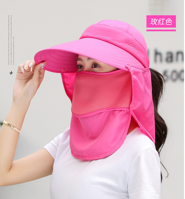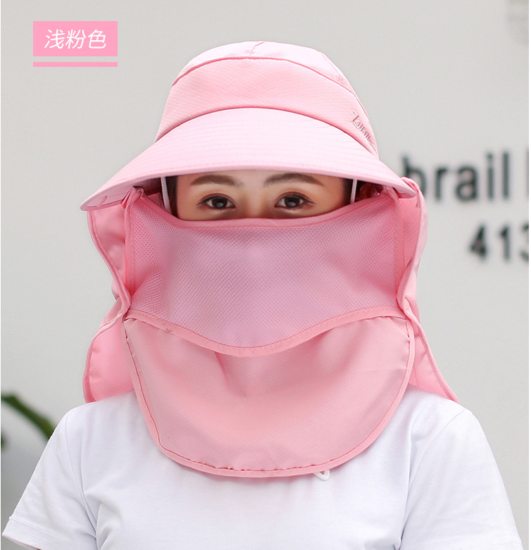 태양 모자 여성의 야외 자외선 보호 태양 모자 여름 자전거 얼굴 커버 목 보호 태양 모자 큰 테두리 차 따기 모자