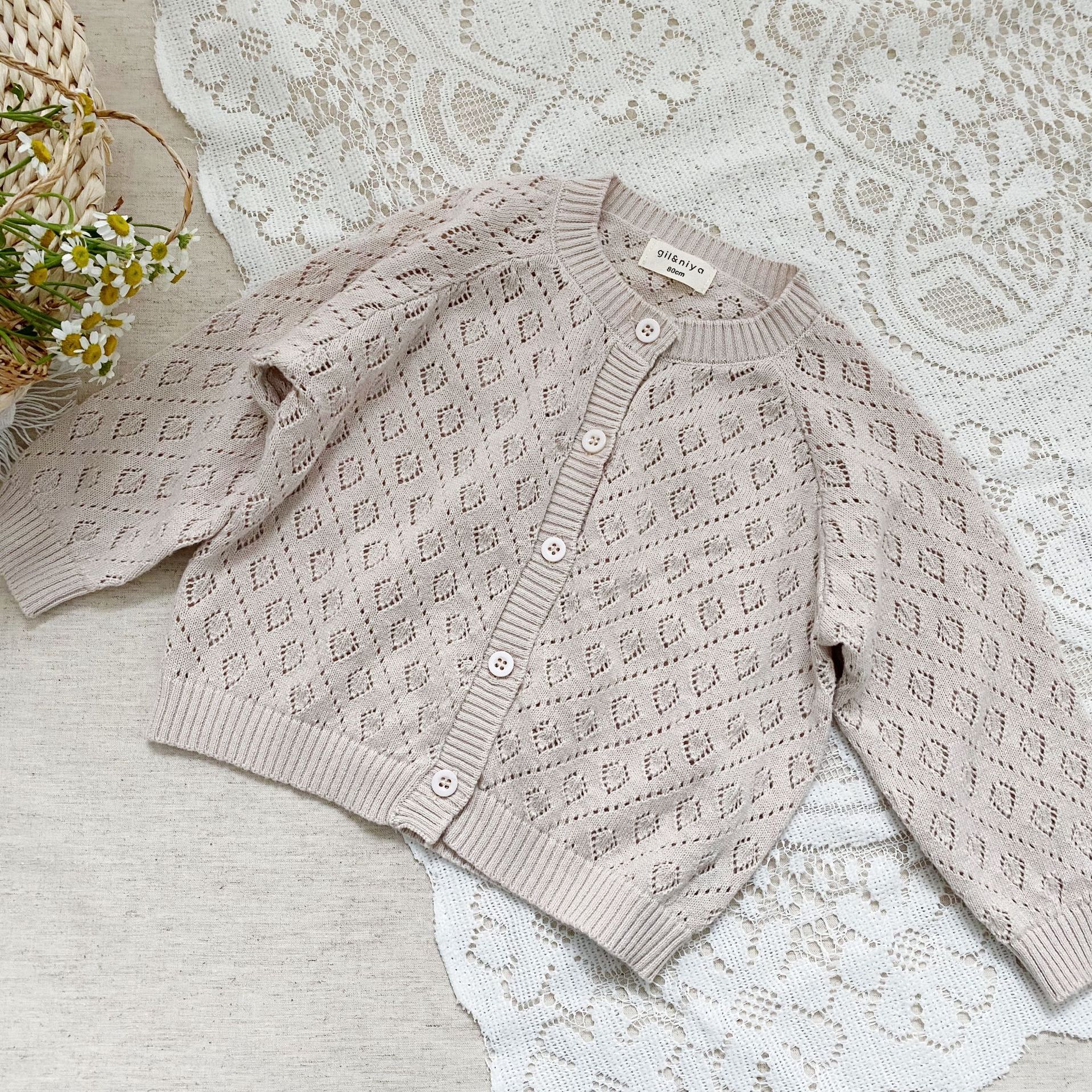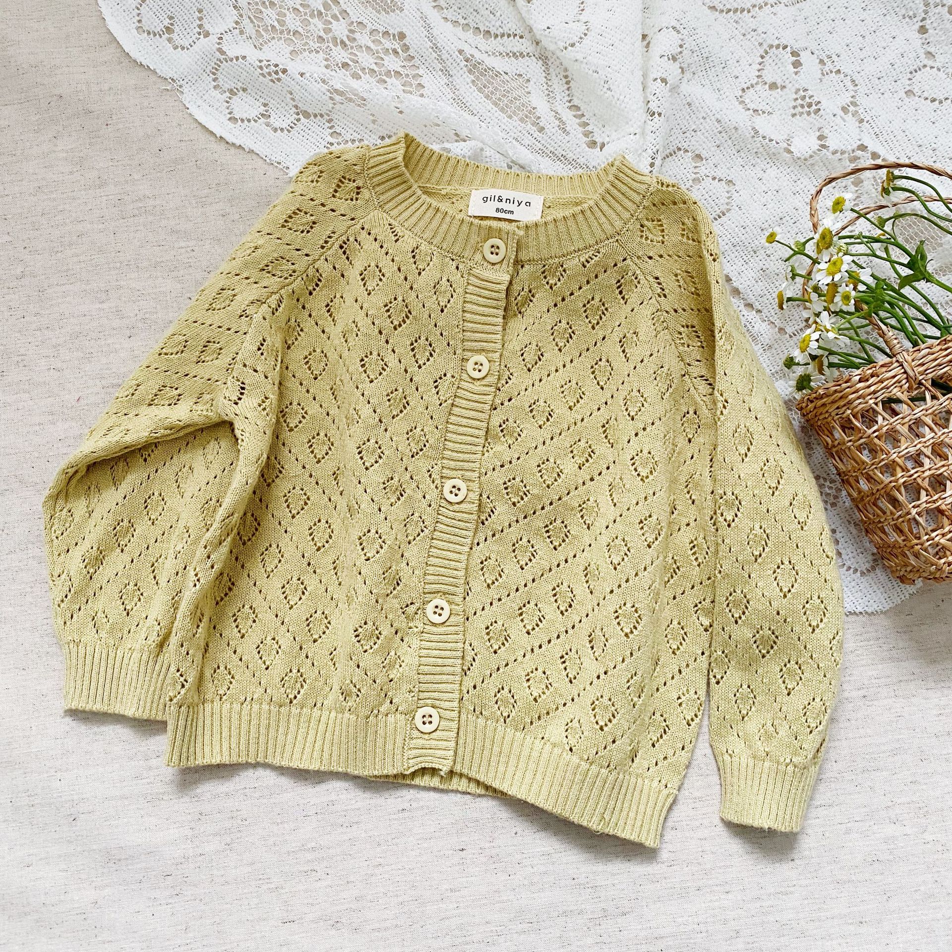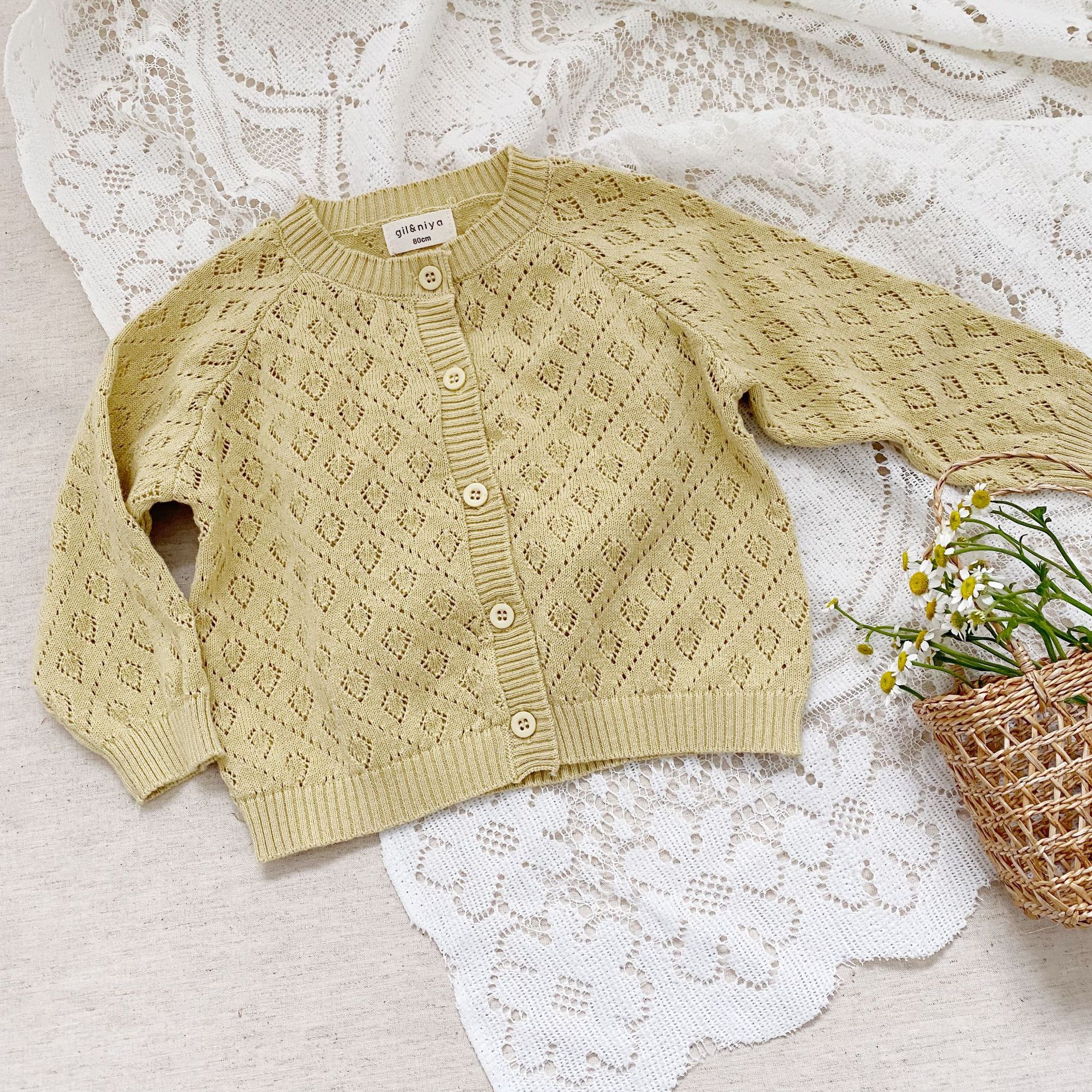 여아 봄 여름 가을 유아 긴팔 단색 태양 보호 셔츠 에어컨 가디건 니트 중공 재킷