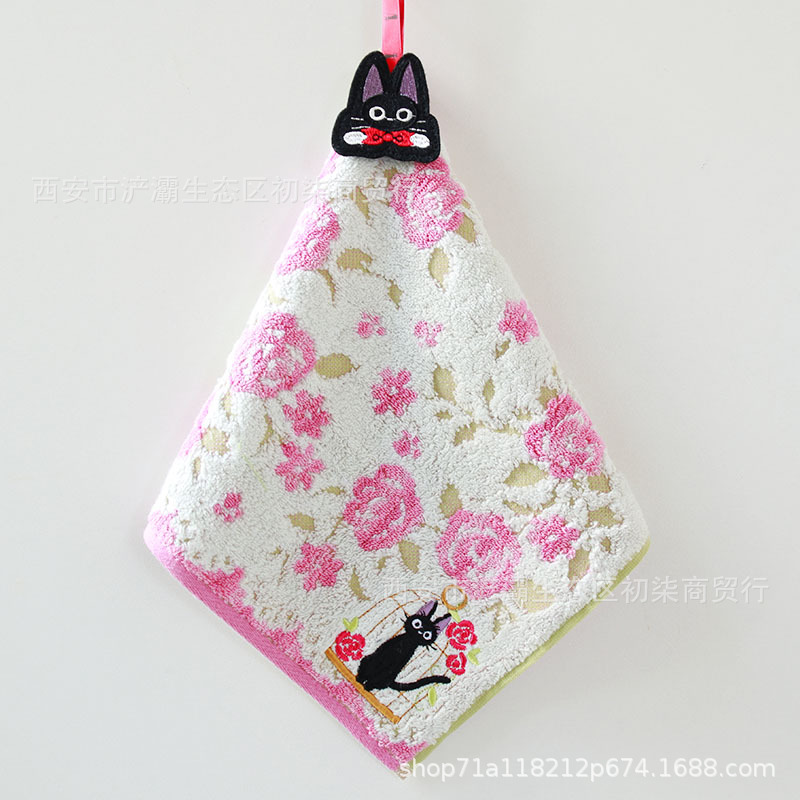 매장 축하 수출 대외 무역 jiji 고양이 검은 고양이 전체 수 놓은 끈 귀여운 면 손수건 작은 사각형 수건