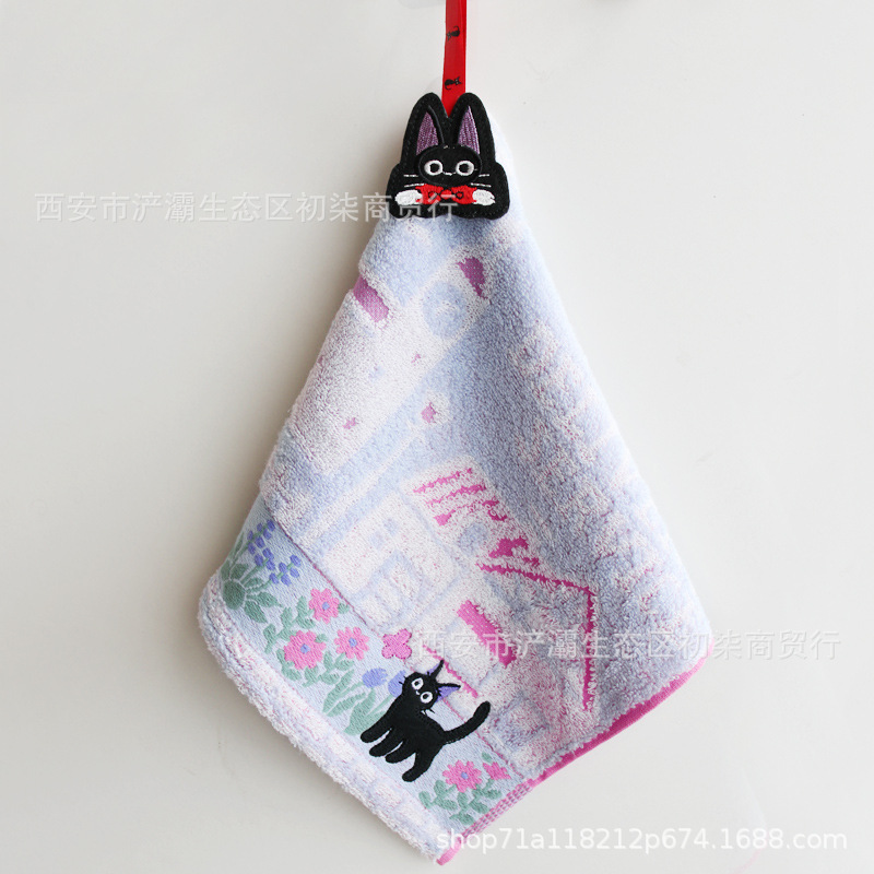 매장 축하 수출 대외 무역 jiji 고양이 검은 고양이 전체 수 놓은 끈 귀여운 면 손수건 작은 사각형 수건스토어 가기