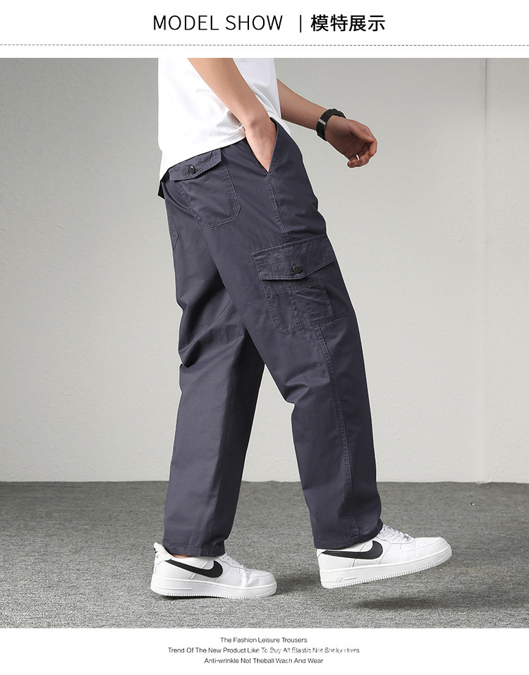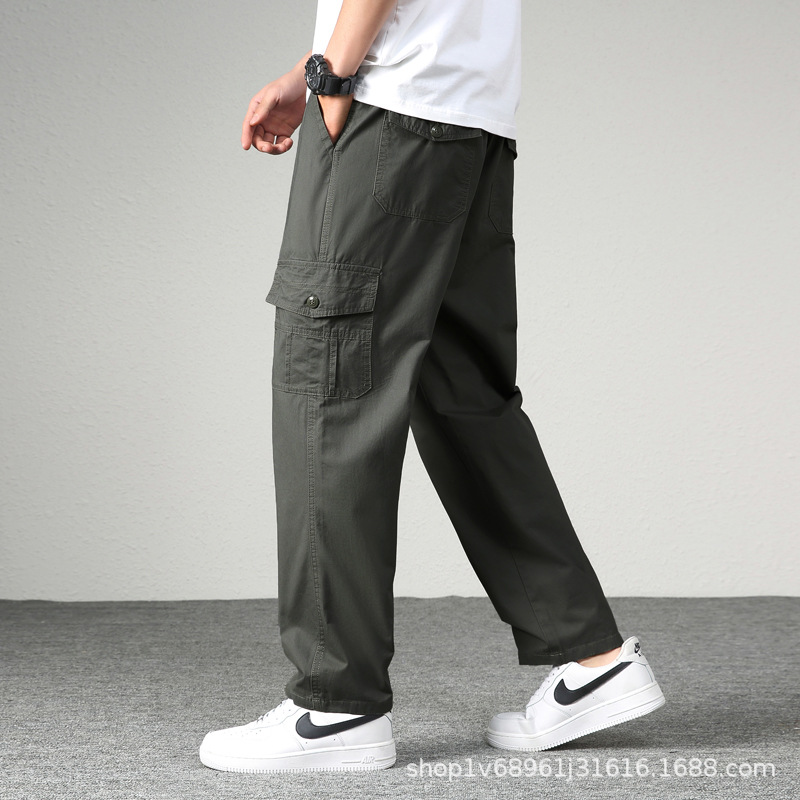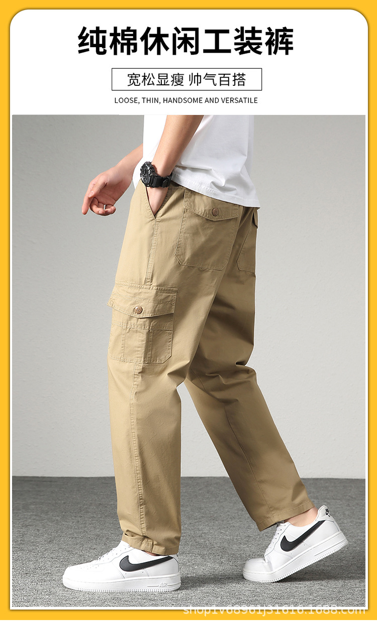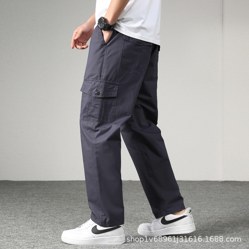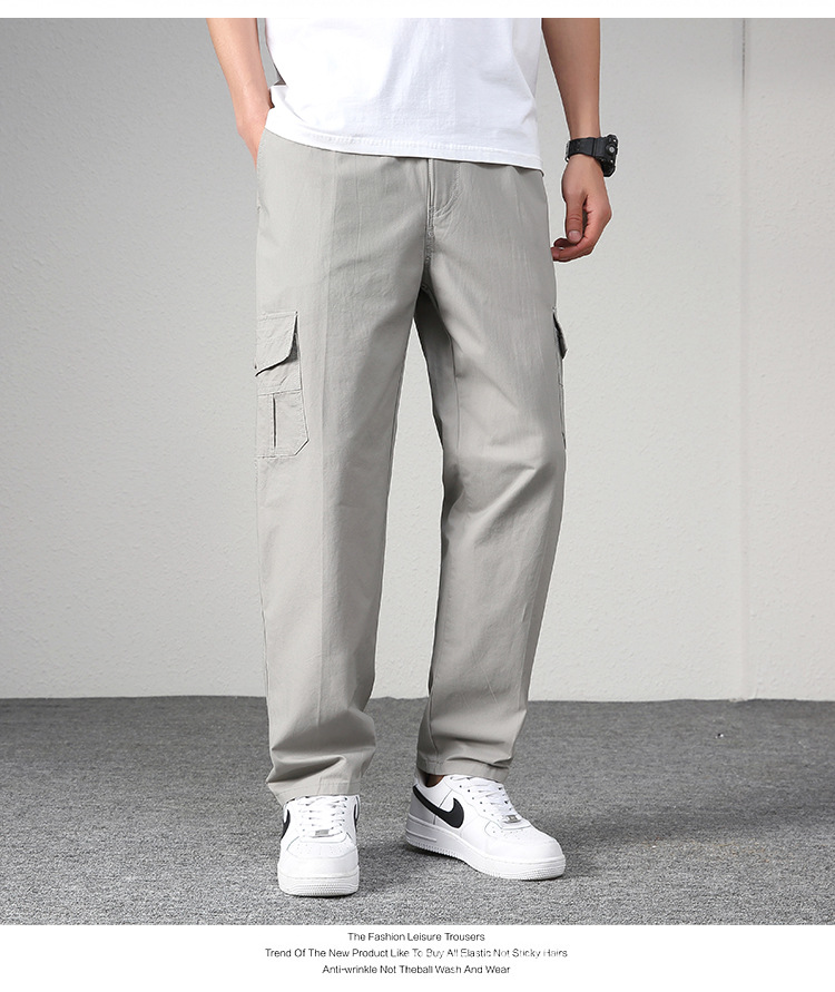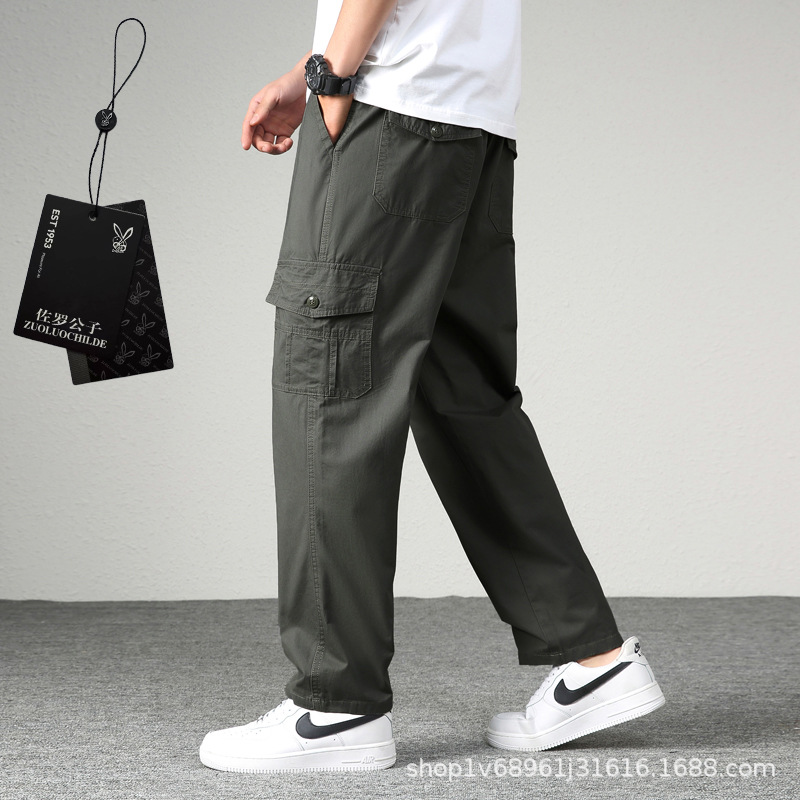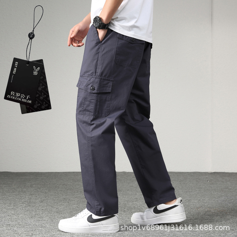 Zoruo Gongzi 캐주얼 바지 남성용 루즈한 스트레이트 팬츠 남성 바지 순면 봄과 가을 바지 신축성 바지 805