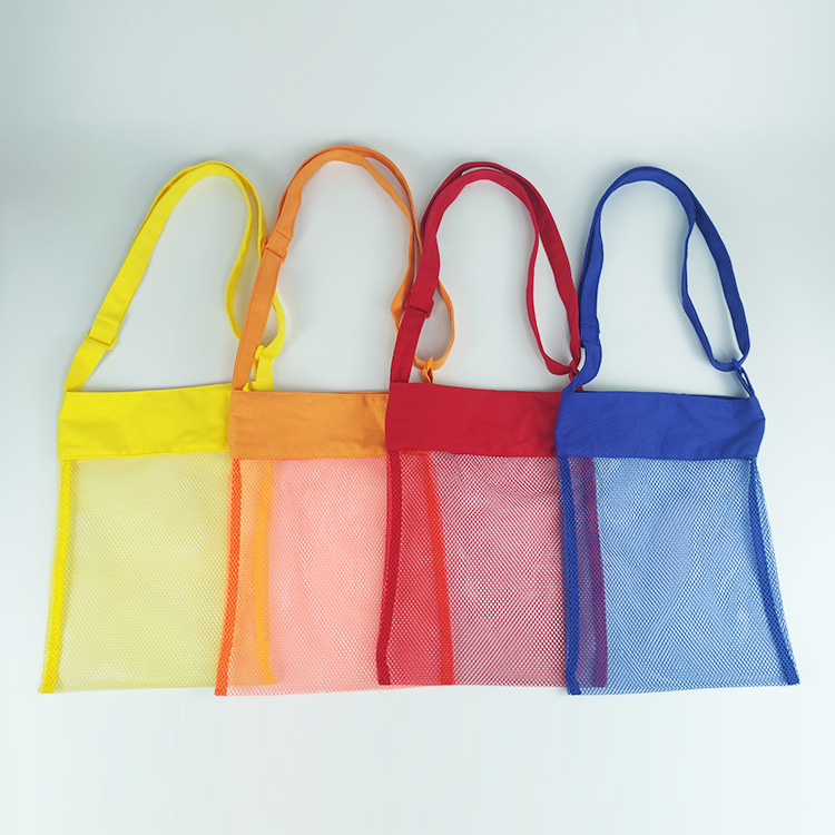 재고 야외 해변 메쉬 가방 어린이 조개 비치 가방 휴대용 크로스 바디 조정 가능한 장난감 보관 가방