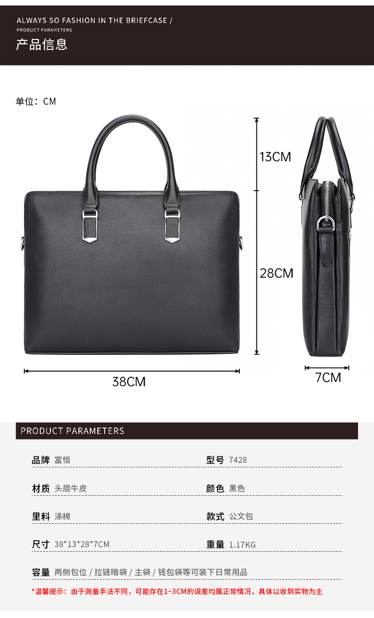 【尺寸】:38cm(长)x 7cm(宽)x 28cm(高),附1条可调整长度的长肩带