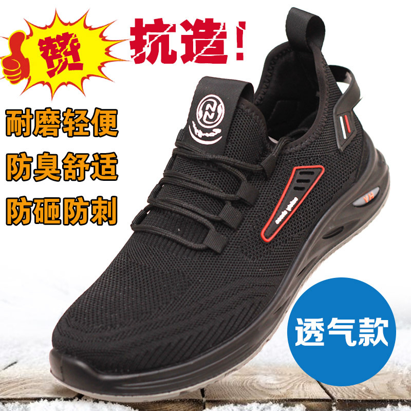 블랙 노동 보호 신발 단단한 바닥 통기성 플라스틱 스틸 Baotou 안티 스매싱 및 펑크 방지 절연 현장 작업을위한 남성용 작업 신발스토어 가기