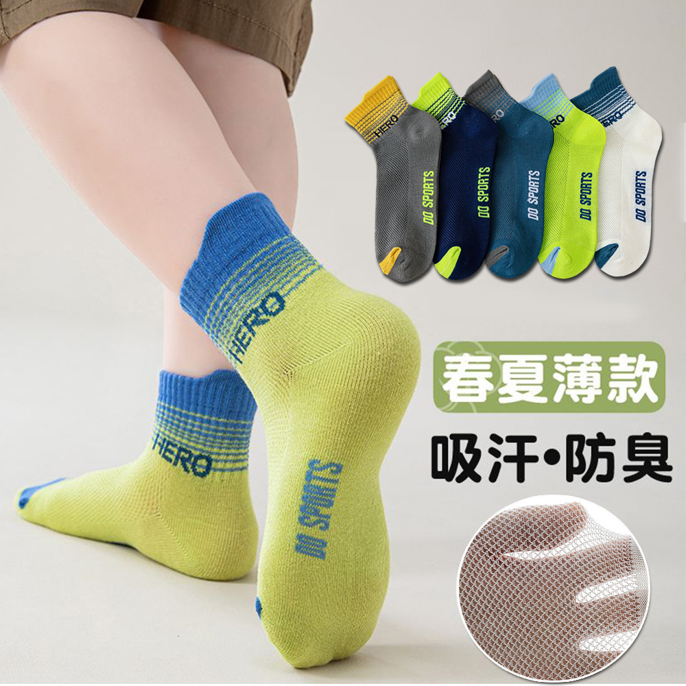 Zhuji 소년 어린이 양말 메쉬 튜브 양말 봄과 여름 얇은 아기면 양말 소녀 아기 양말 도매