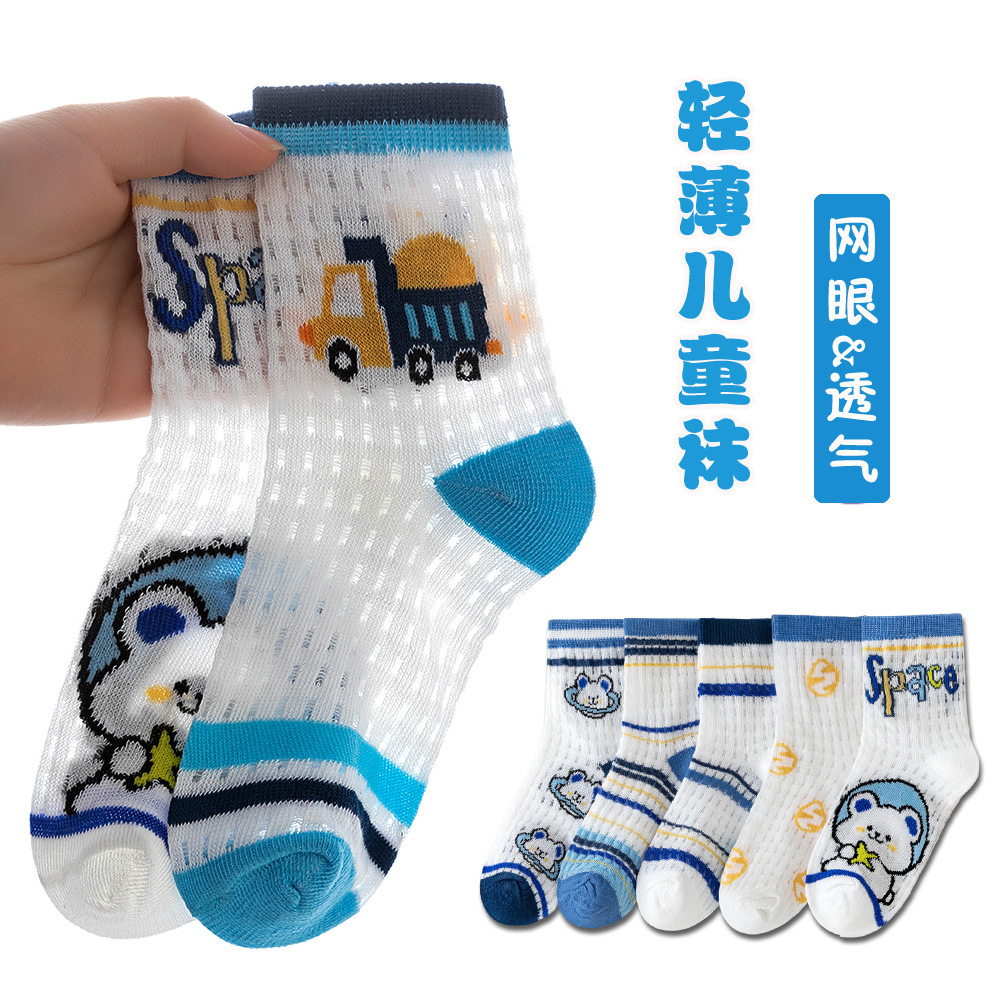 Zhuji 소년 어린이 양말 메쉬 튜브 양말 봄과 여름 얇은 아기면 양말 소녀 아기 양말 도매스토어 가기