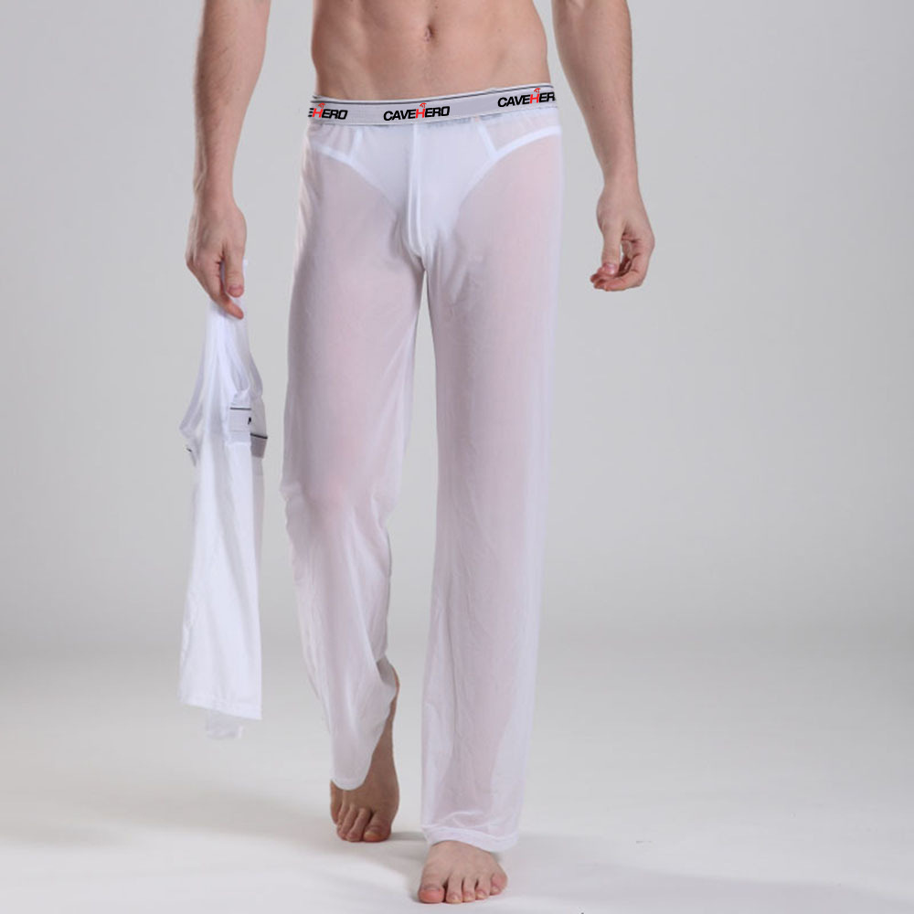 캐주얼 바지 섹시한 시스루 메쉬 바지 크롭 와이드 레그 바지 남성 스포츠 바지 요가 초박형 바지 남성스토어 가기