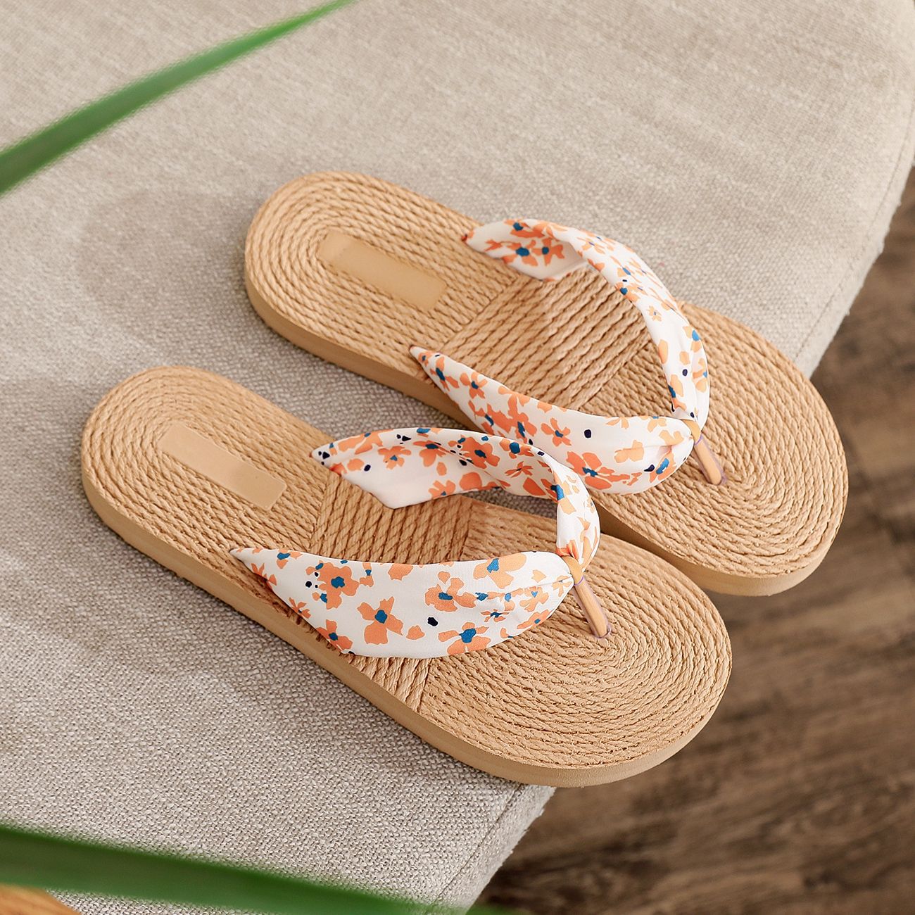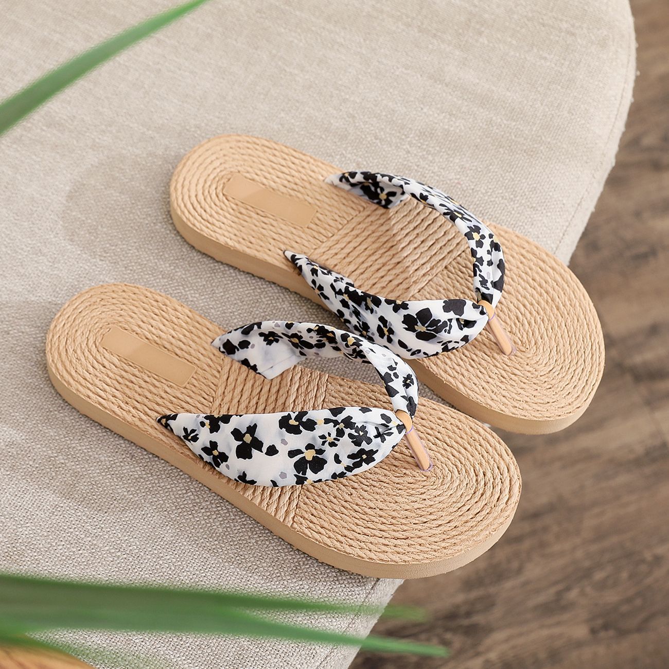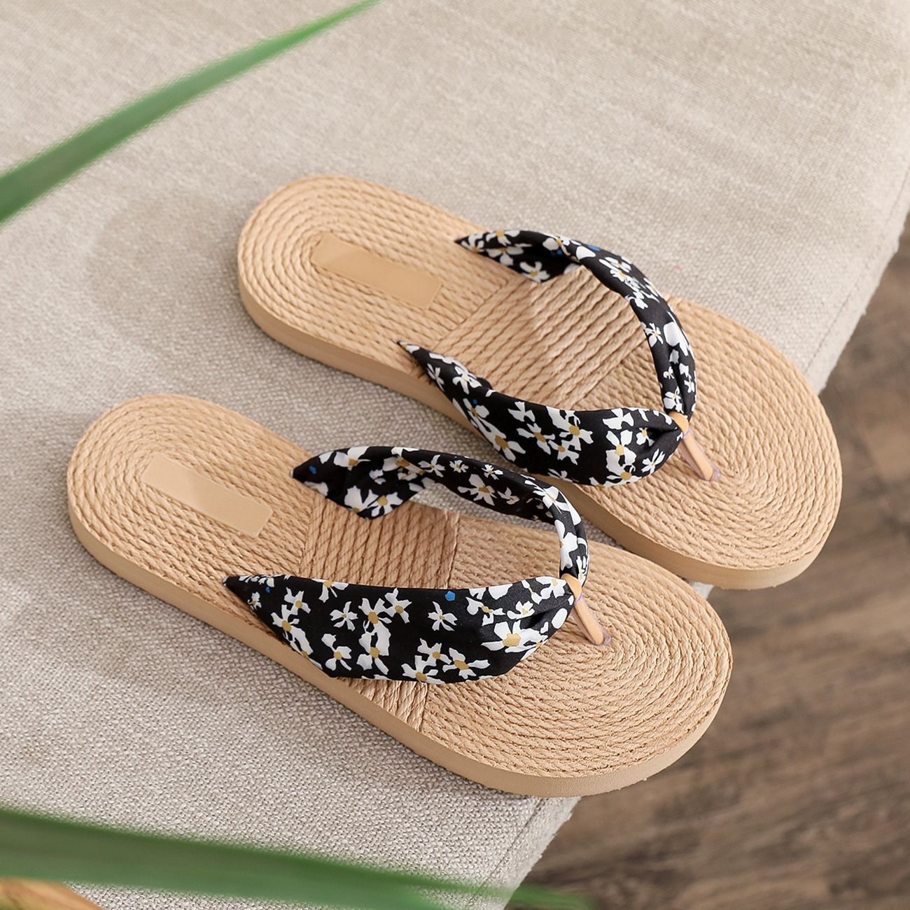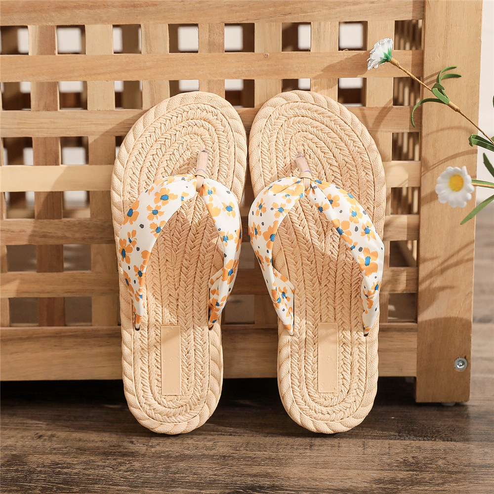 2022 밀짚 모조 대마 바닥 데이지 천 벨트 여성용 플립 플롭 한국 트렌디 한 겉옷 크로스 보더 대외 무역 플랫 힐 플립 플롭