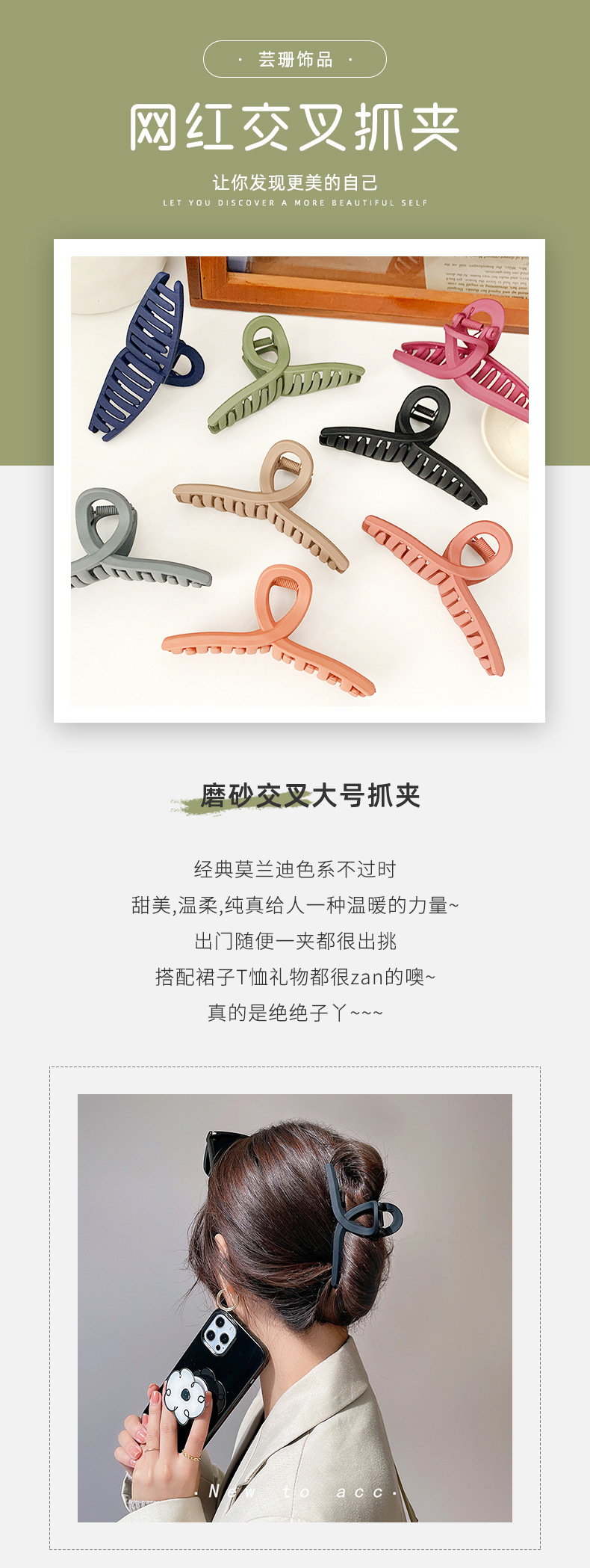 국경을 넘나드는 한국 모란디 컬러 반투명 크로스 그립 클립 한국 블로거 스타일 고급 대형 상어 클립 헤어 그립스토어 가기