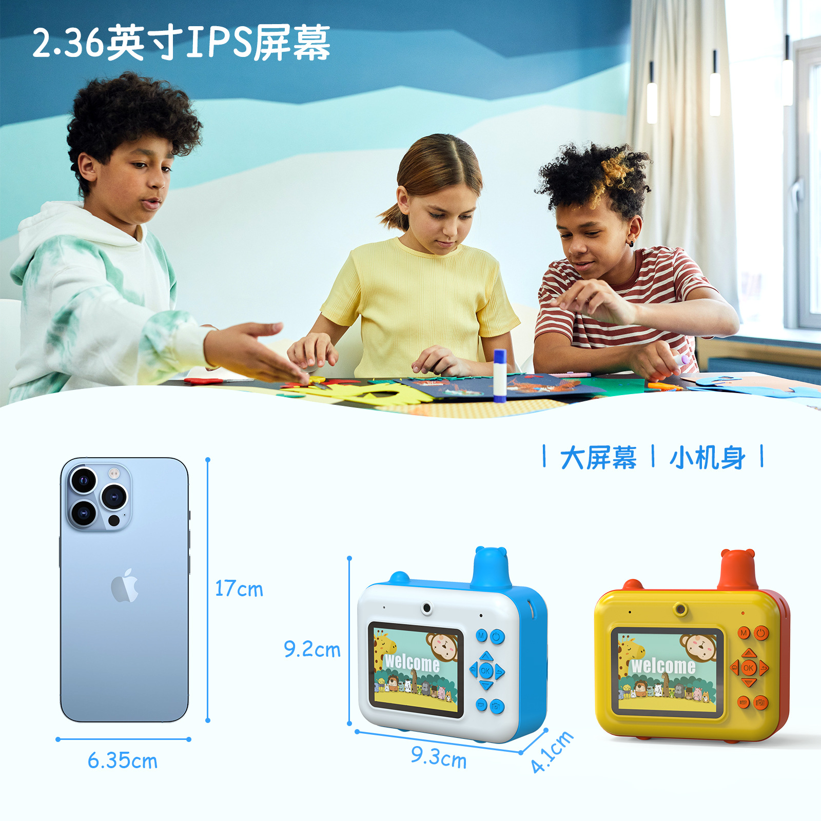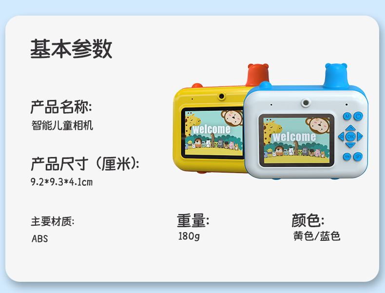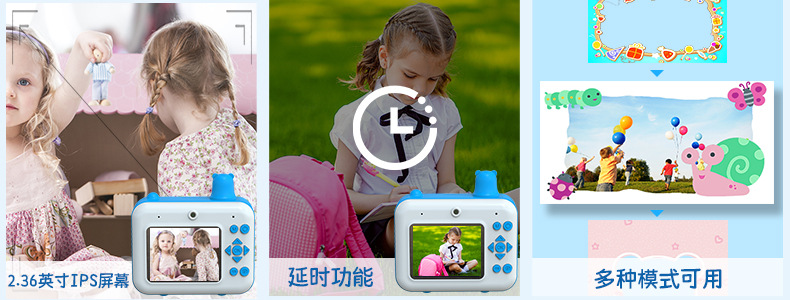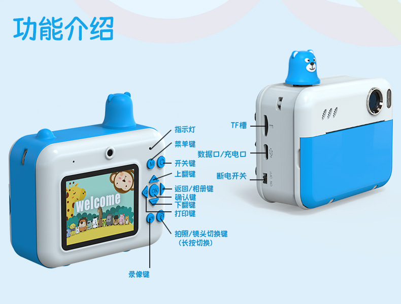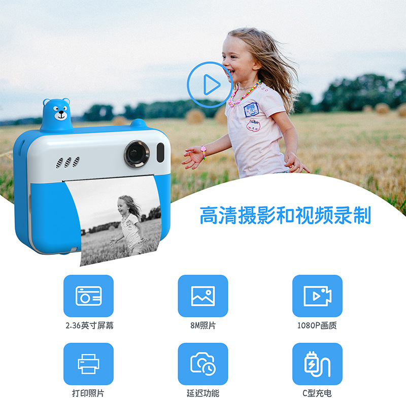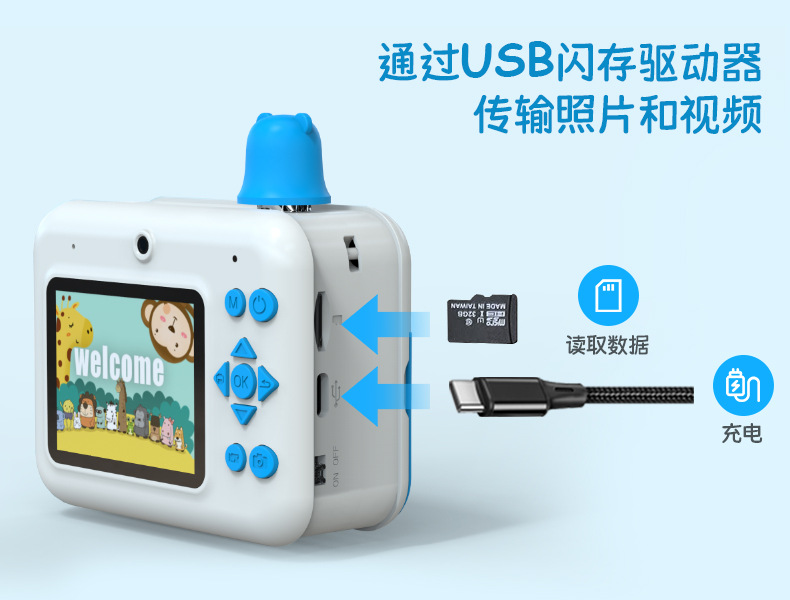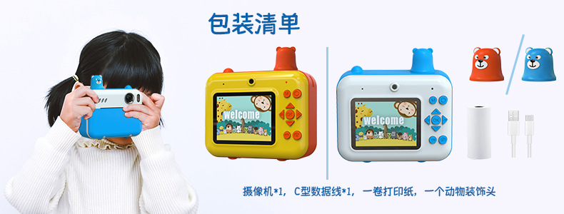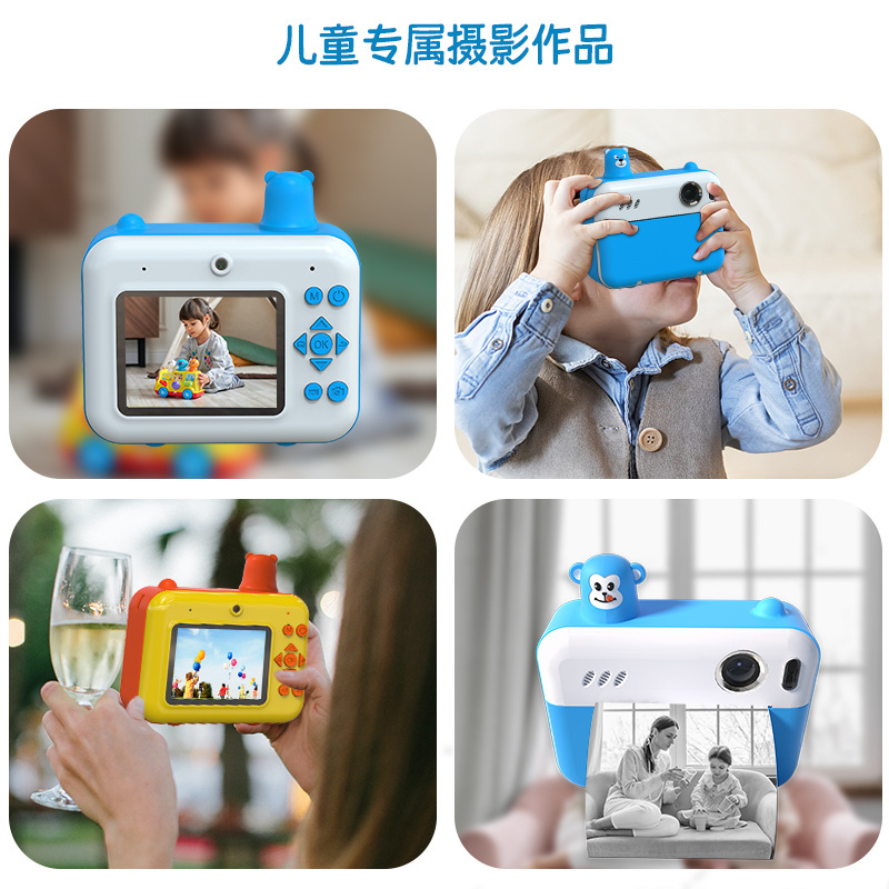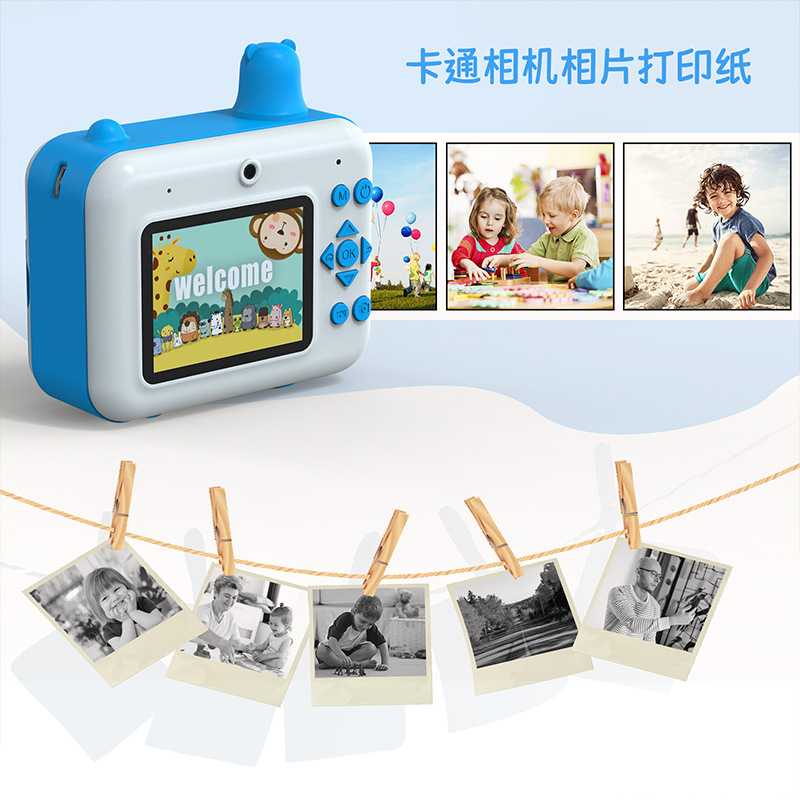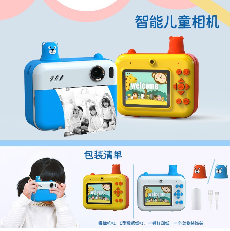 어린이용 즉석카메라 듀얼 렌즈 사진 및 비디오 촬영 만화 장난감 카메라 셀카 가능 열전사 인쇄 카메라스토어 가기