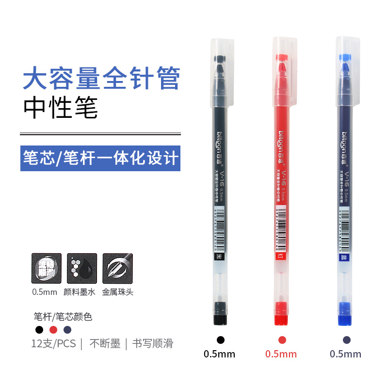 벨덴 V-16 젤 펜 일회용 대용량 물 펜 사무실 사인 펜 0.5mm 검정 빨강 파랑 펜 도매