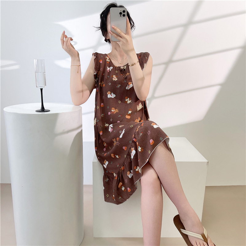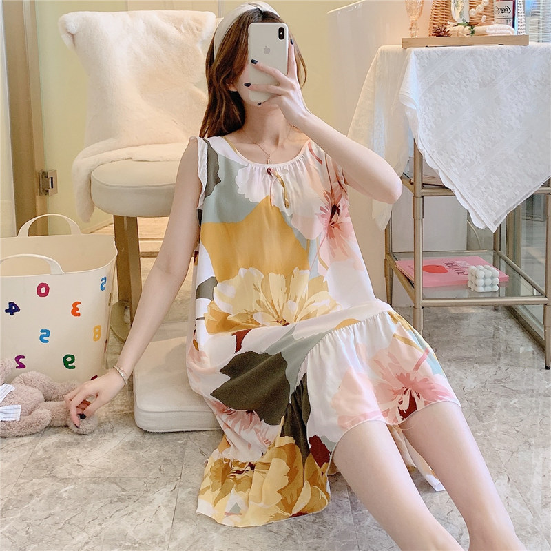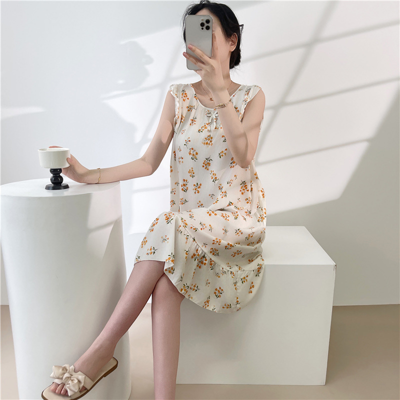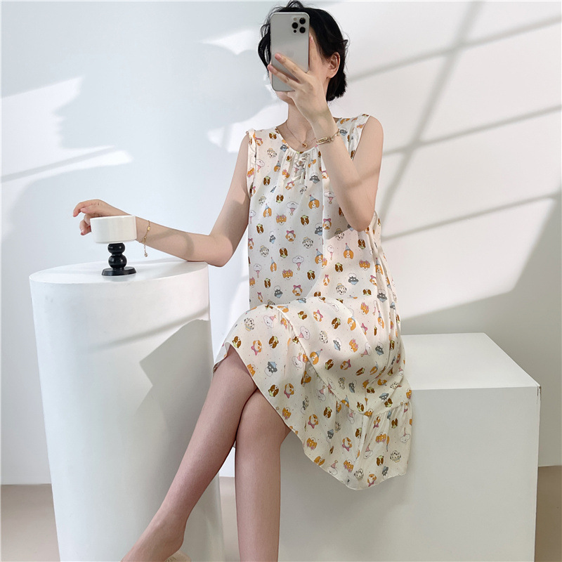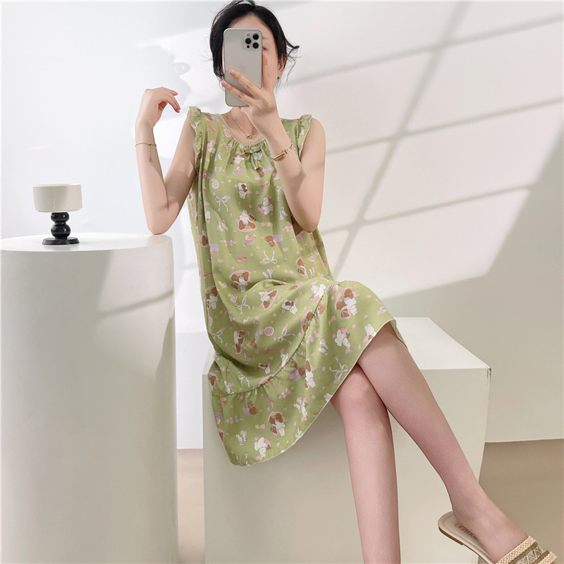 2026 면 실크 잠옷 여성 여름 얇은 한국 스타일 공주풍 원피스 귀여운 루즈핏 여름 인조면 홈웨어스토어 가기