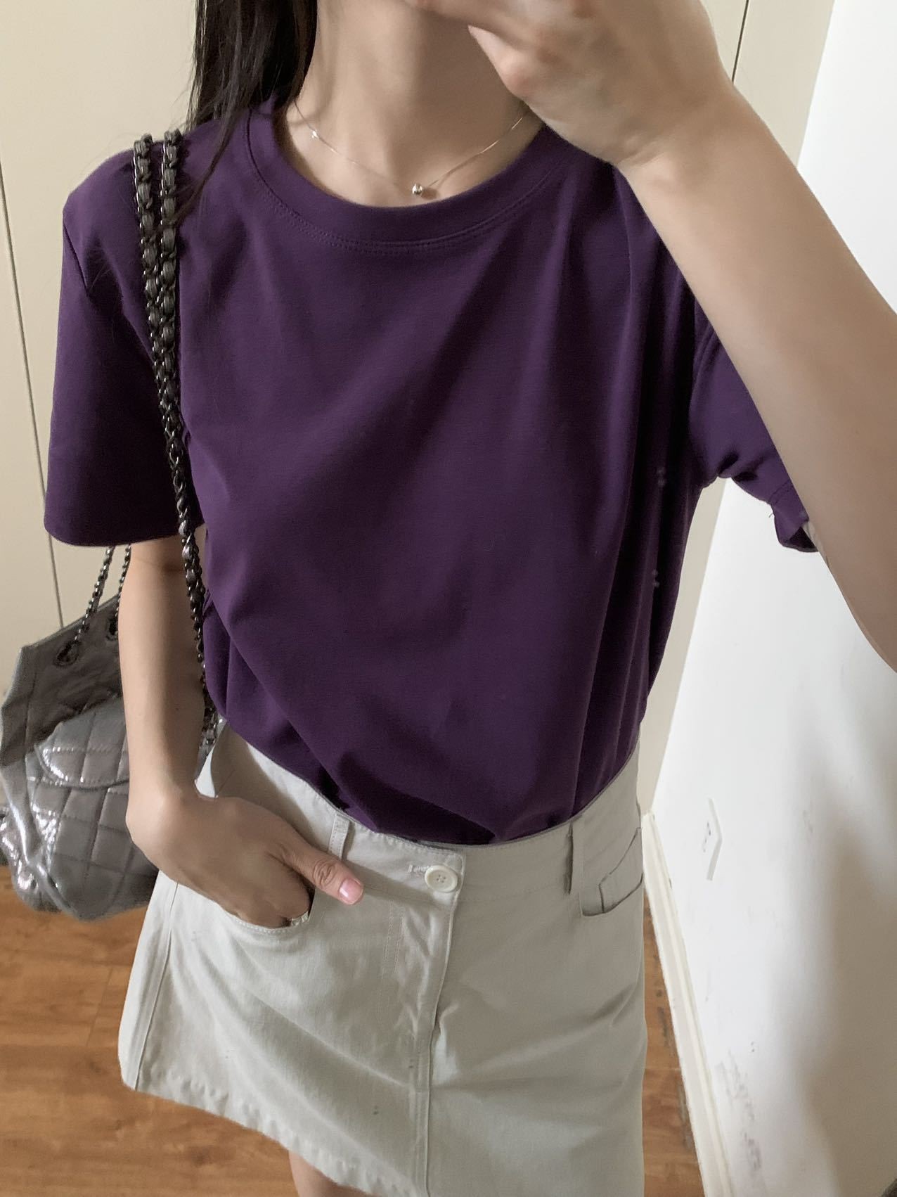 [48 색상 옵션] 봄과 여름 새로운 라운드 넥 짧은 소매 티셔츠 여성용 느슨한 면화 풀오버 단색 간단한 다용도 탑