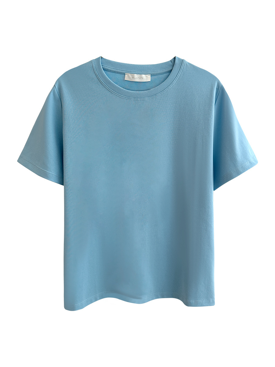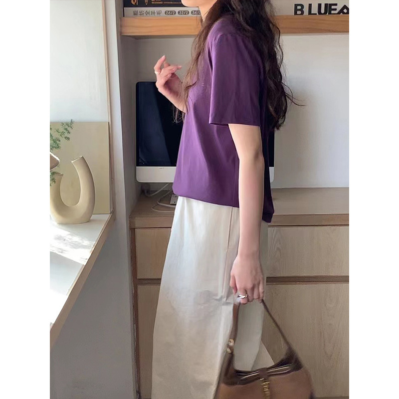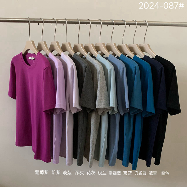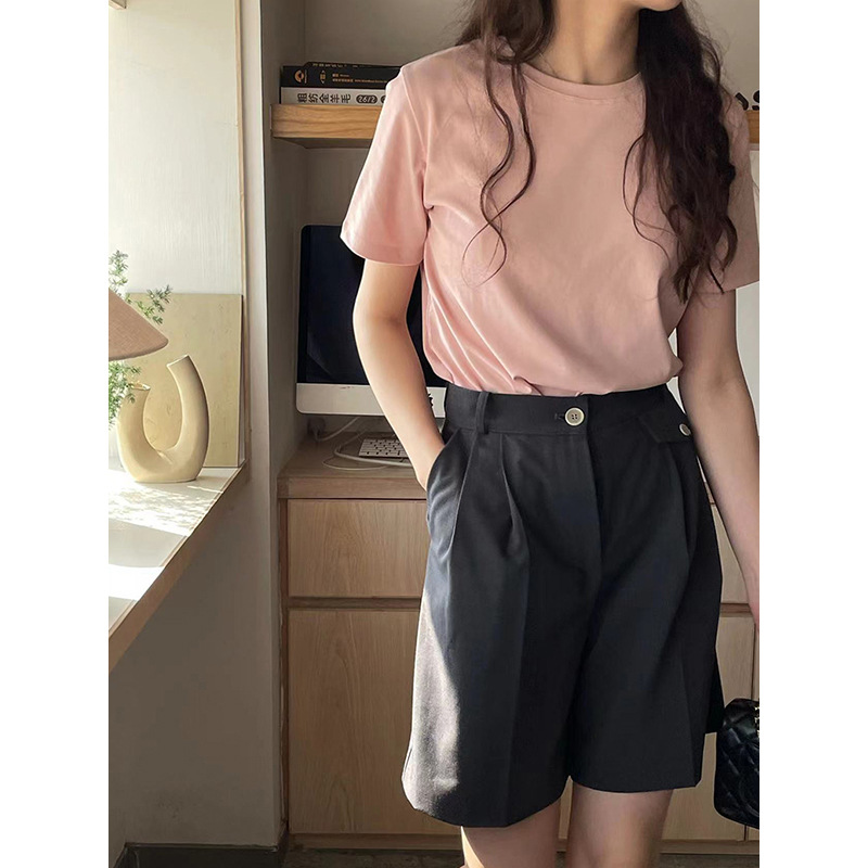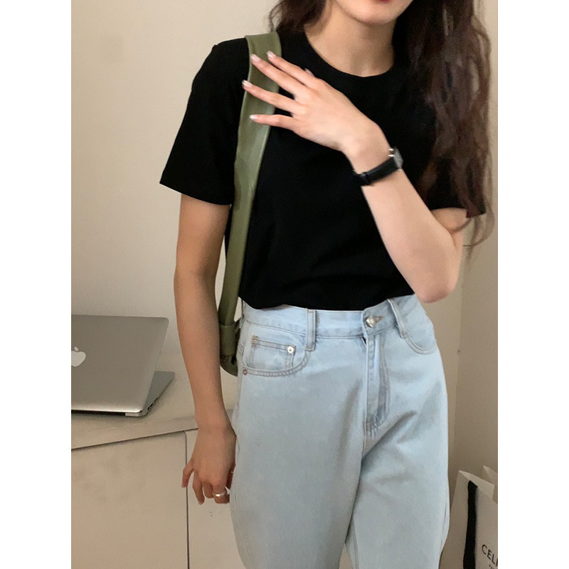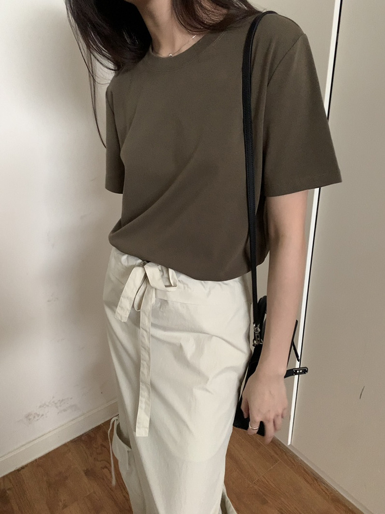 [48 색상 옵션] 봄과 여름 새로운 라운드 넥 짧은 소매 티셔츠 여성용 느슨한 면화 풀오버 단색 간단한 다용도 탑스토어 가기
