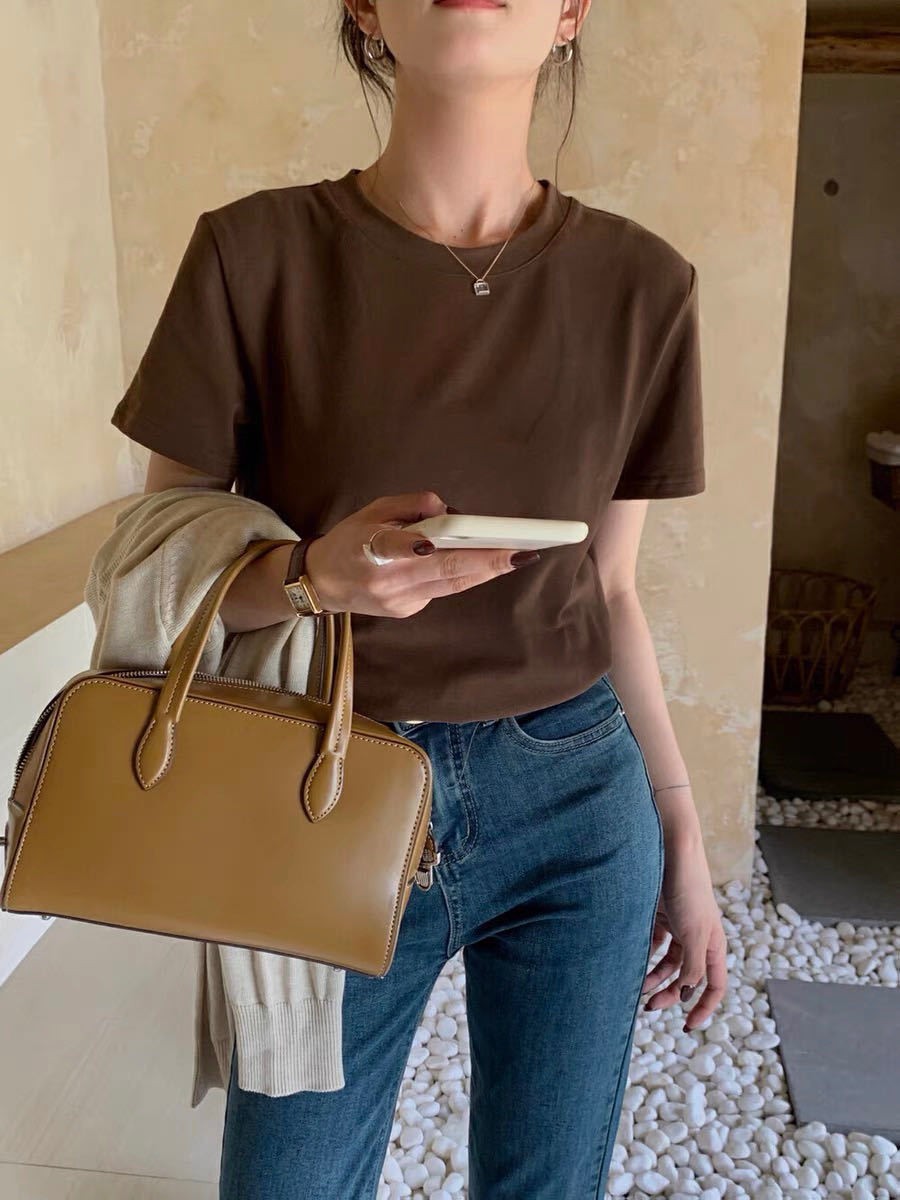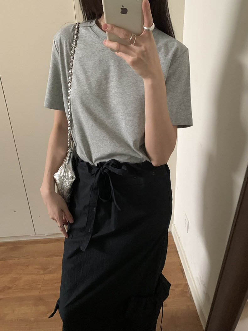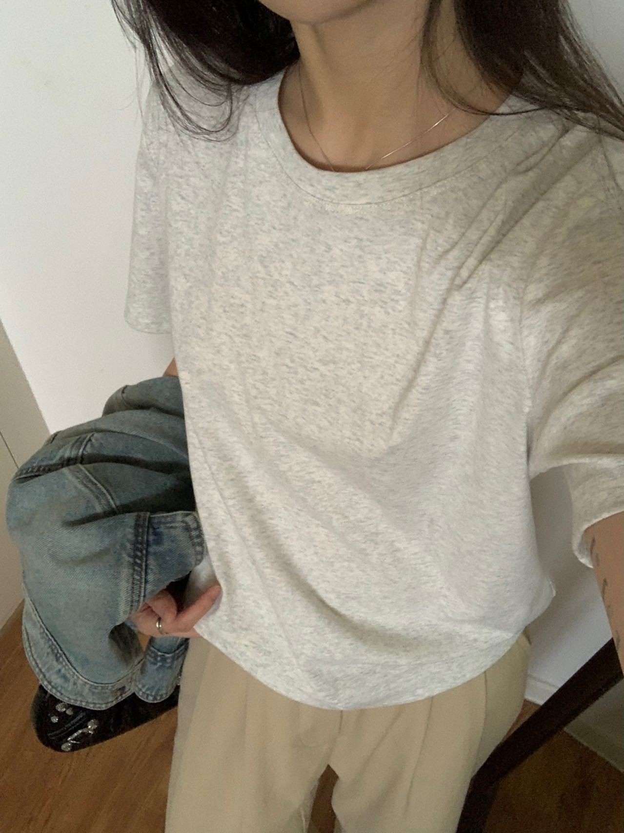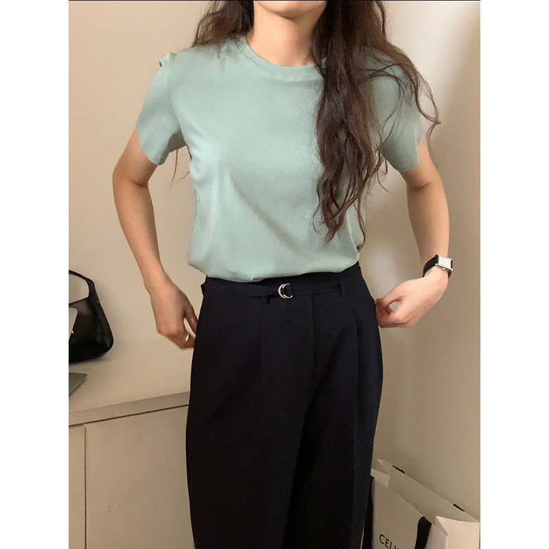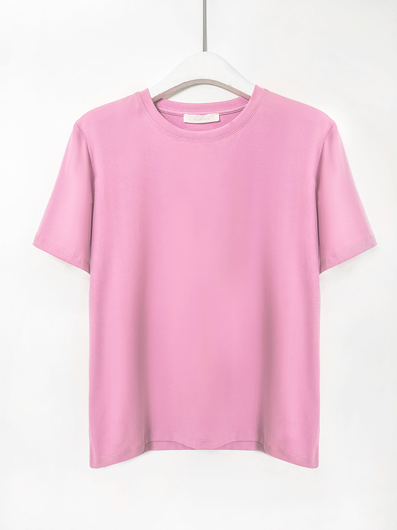 [48 색상 옵션] 봄과 여름 새로운 라운드 넥 짧은 소매 티셔츠 여성용 느슨한 면화 풀오버 단색 간단한 다용도 탑스토어 가기