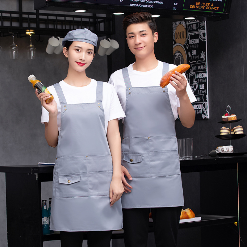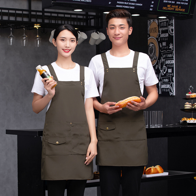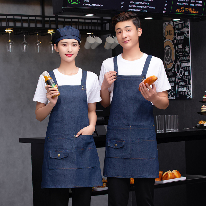 서양 레스토랑 패스트 푸드 커피 숍 밀크 티 매니큐어 케이크 웨이터 작업복 가을과 겨울 캔버스 H 스트랩 스트랩 앞치마