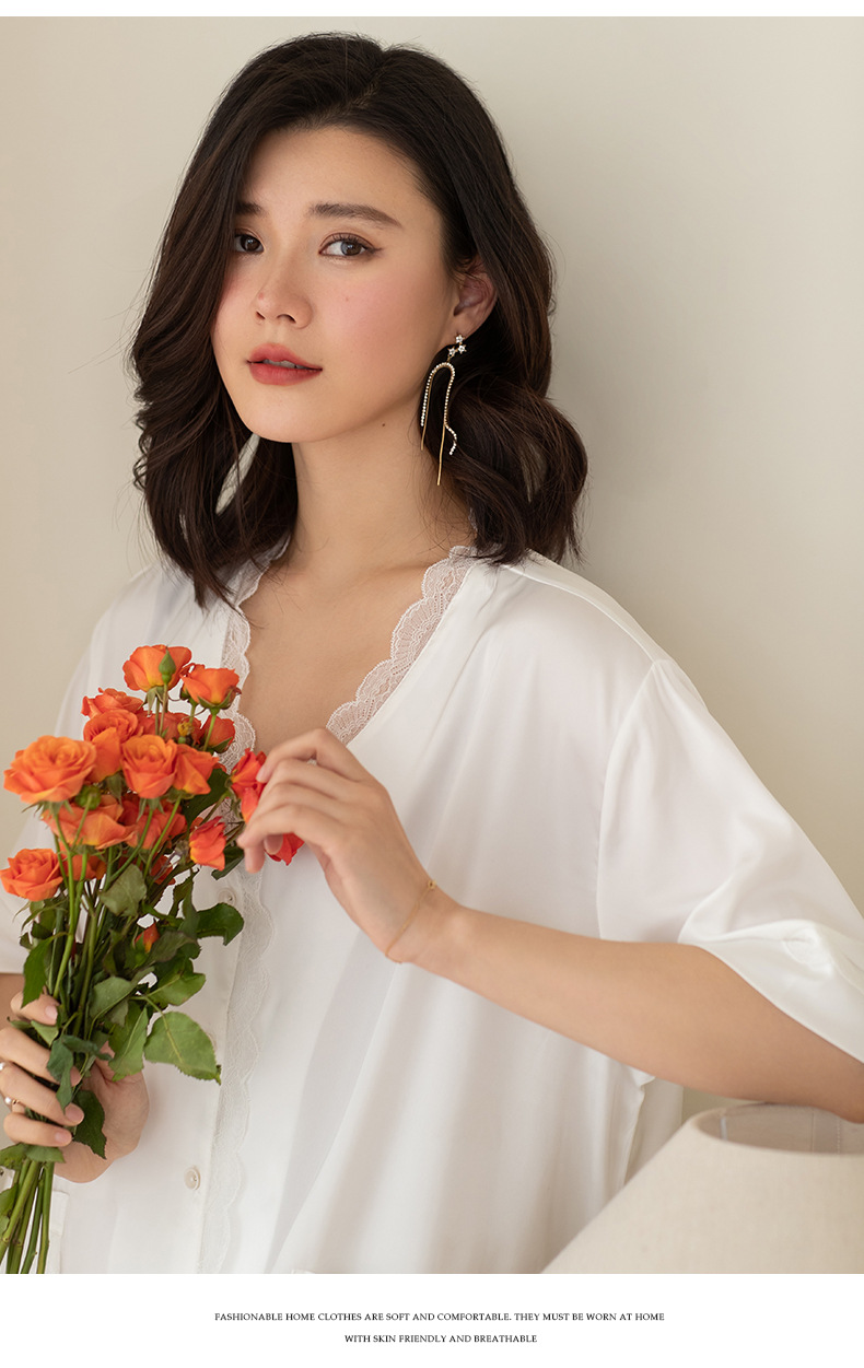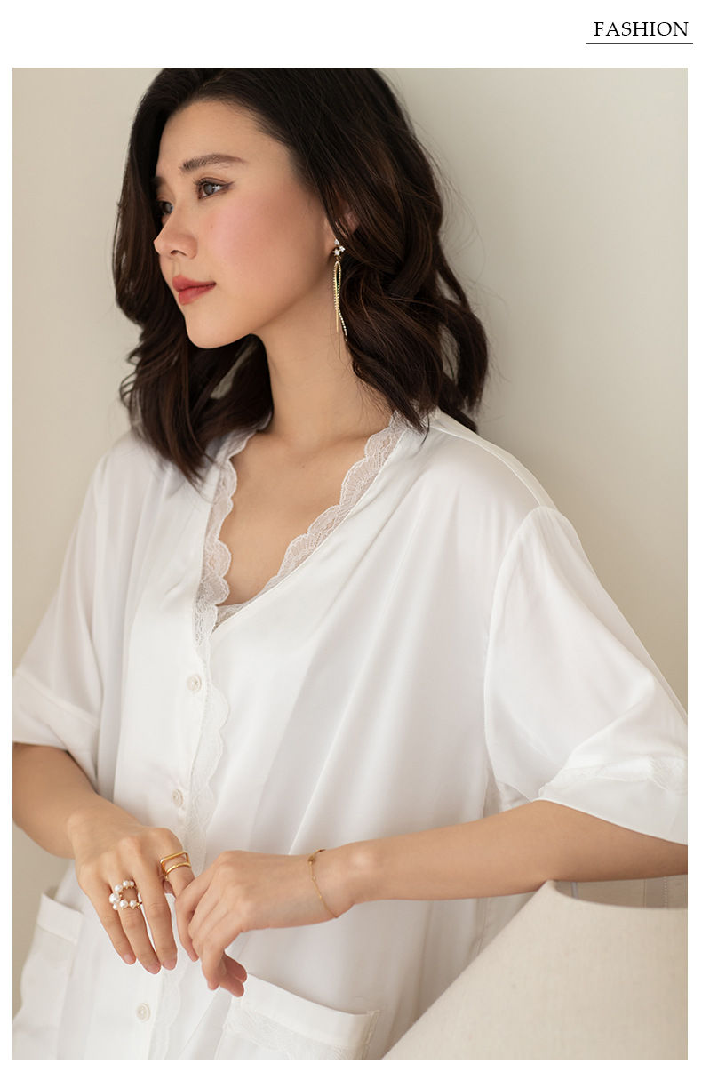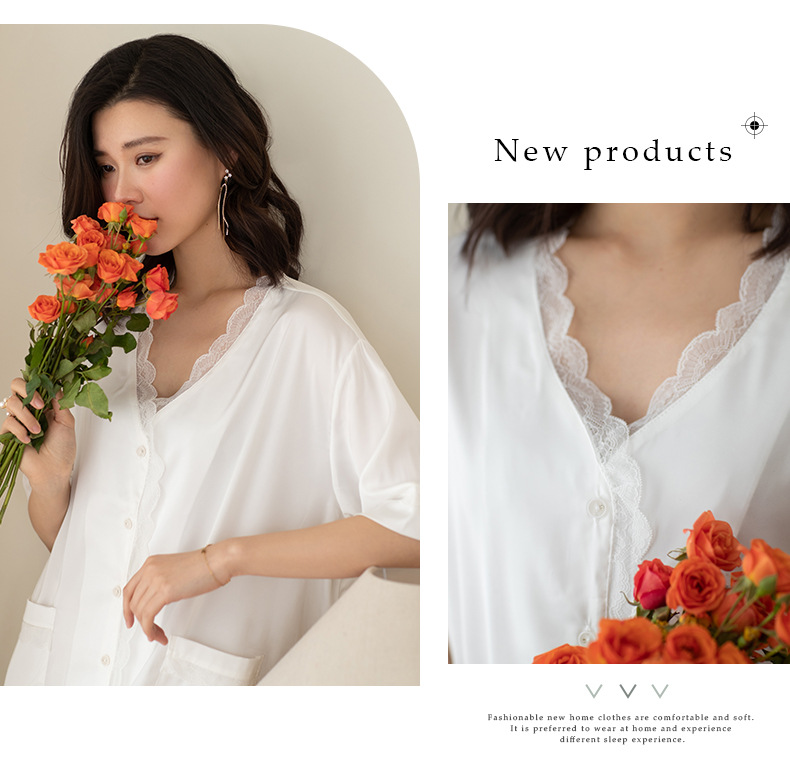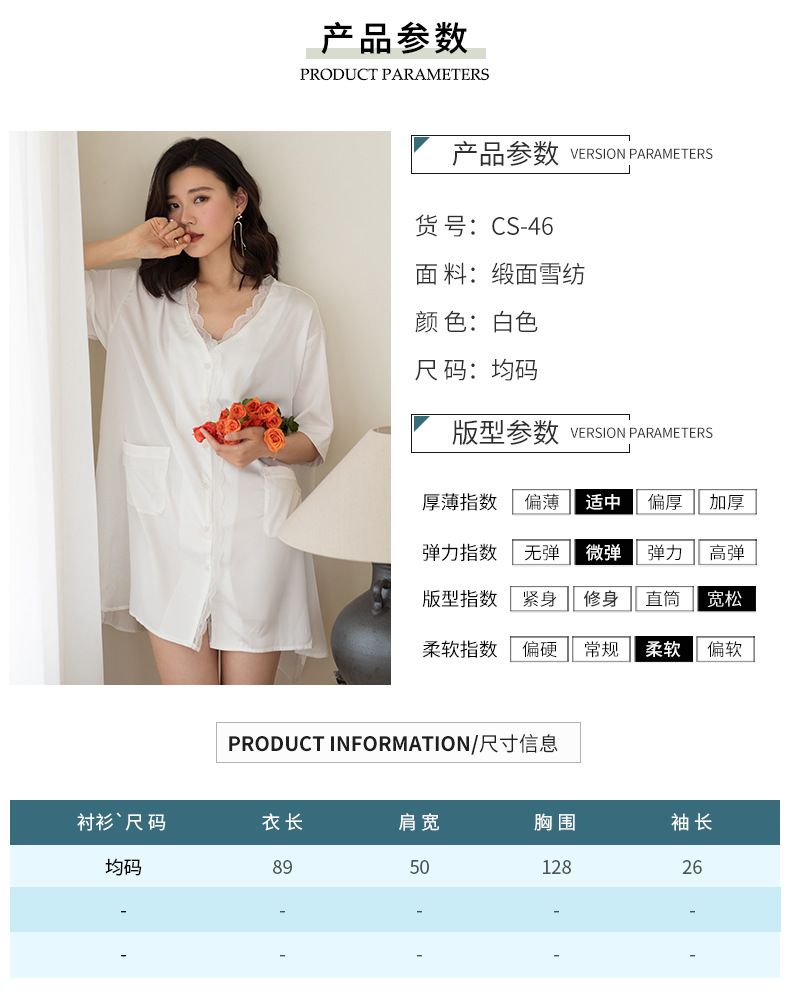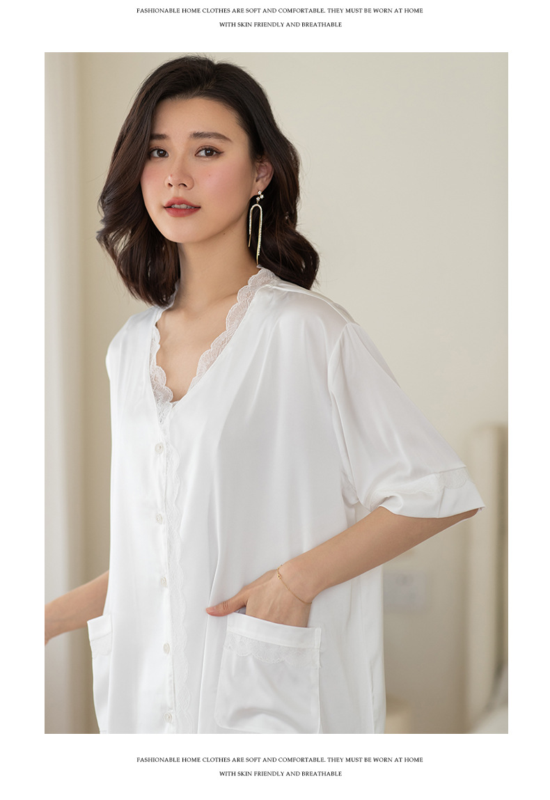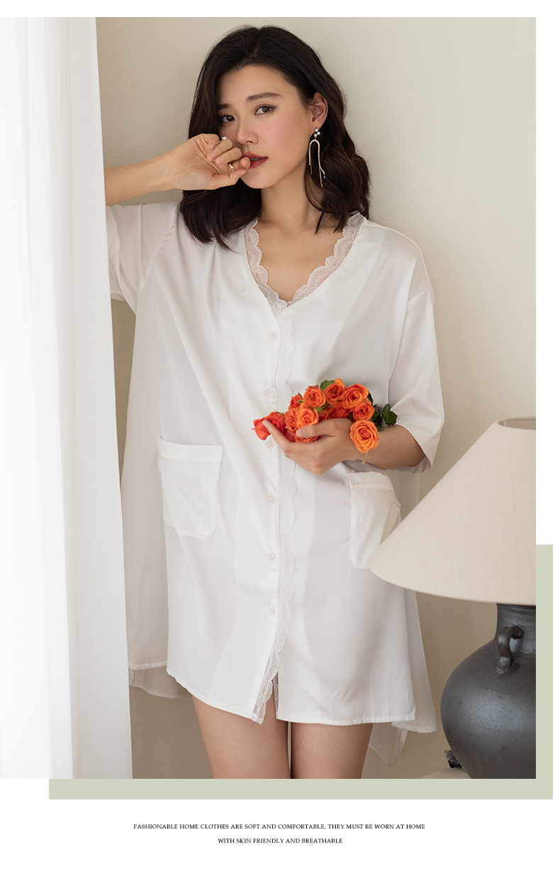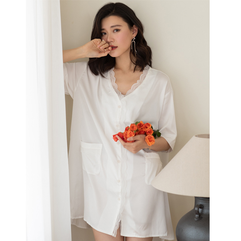 섹시한 잠옷 겨울 남자 친구 스타일 흰색 셔츠 여자의 가을 플러스 사이즈 얼음 실크 흰색 레이스 긴 소매 잠옷 겨울 긴스토어 가기