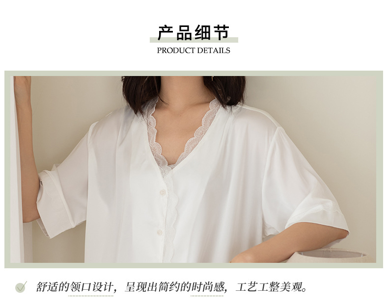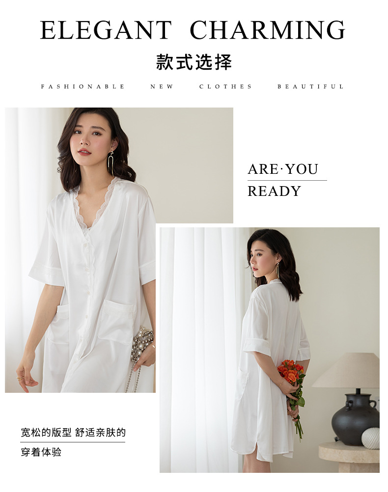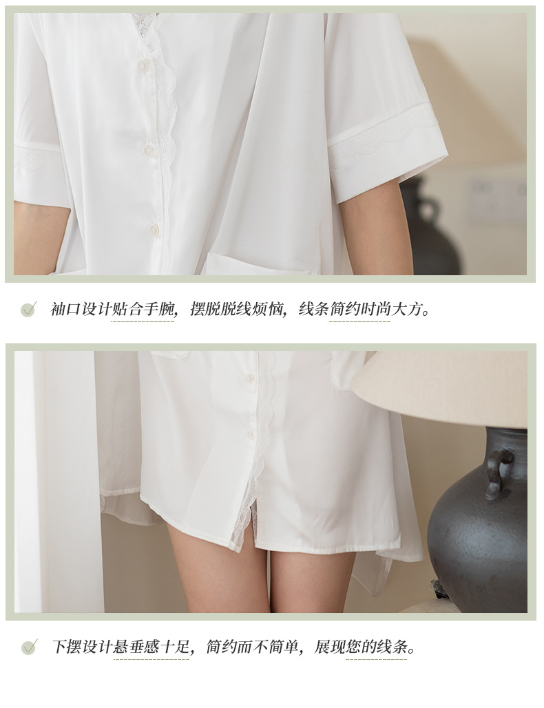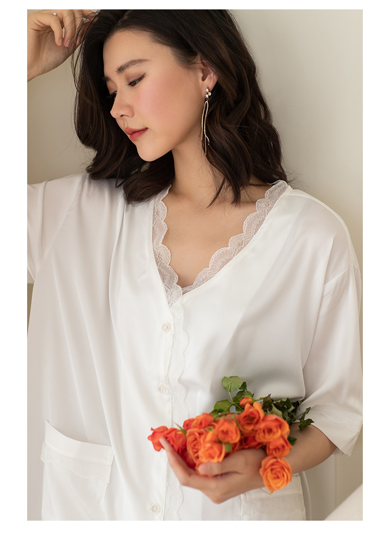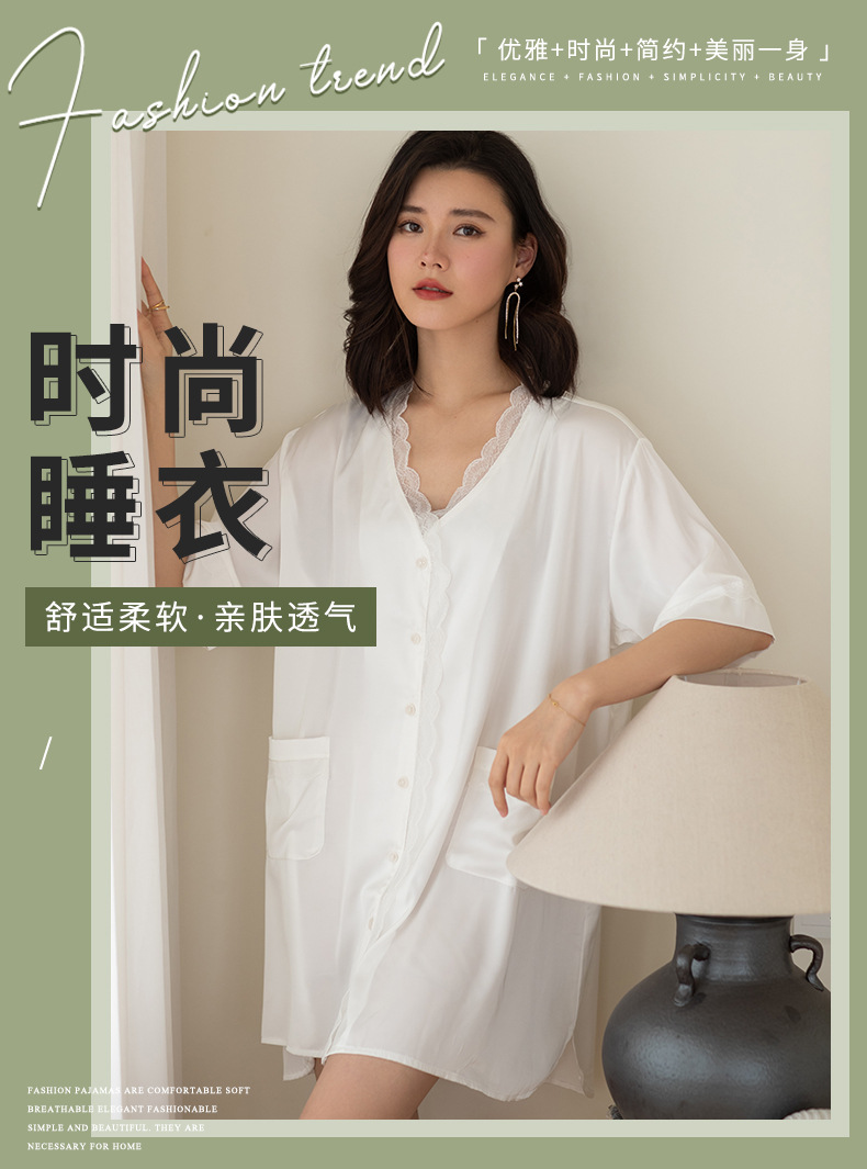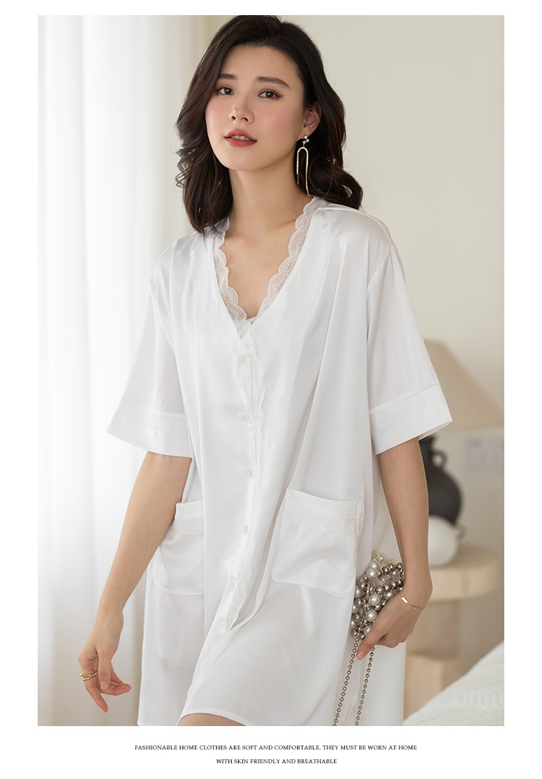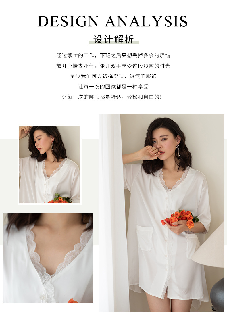 섹시한 잠옷 겨울 남자 친구 스타일 흰색 셔츠 여자의 가을 플러스 사이즈 얼음 실크 흰색 레이스 긴 소매 잠옷 겨울 긴스토어 가기