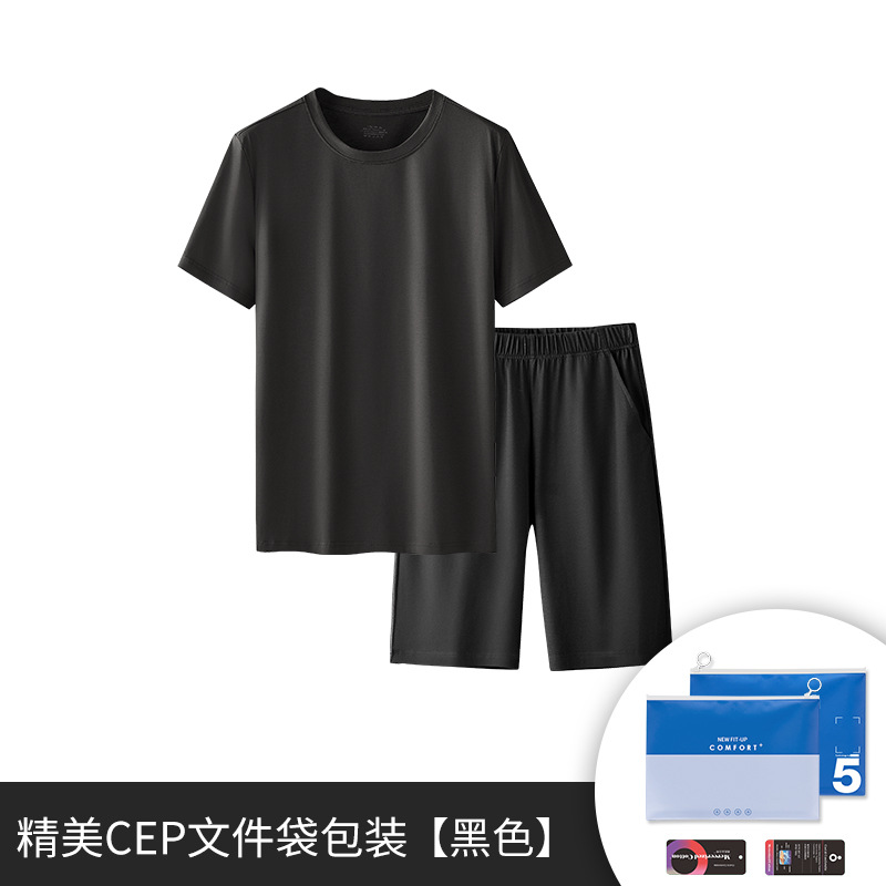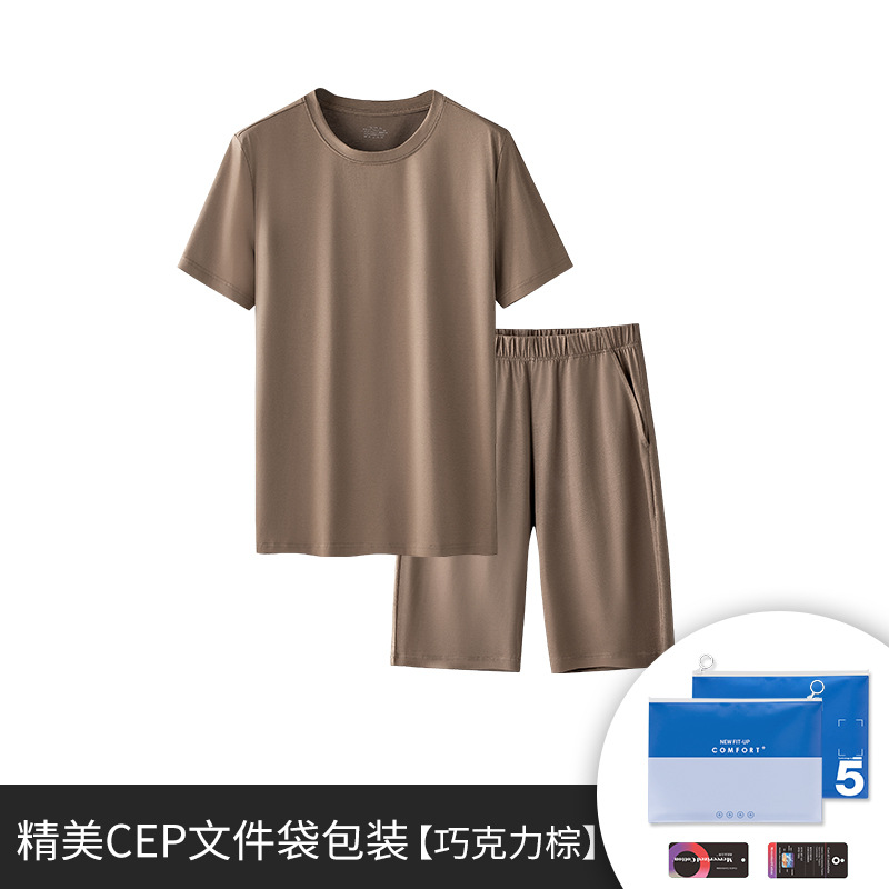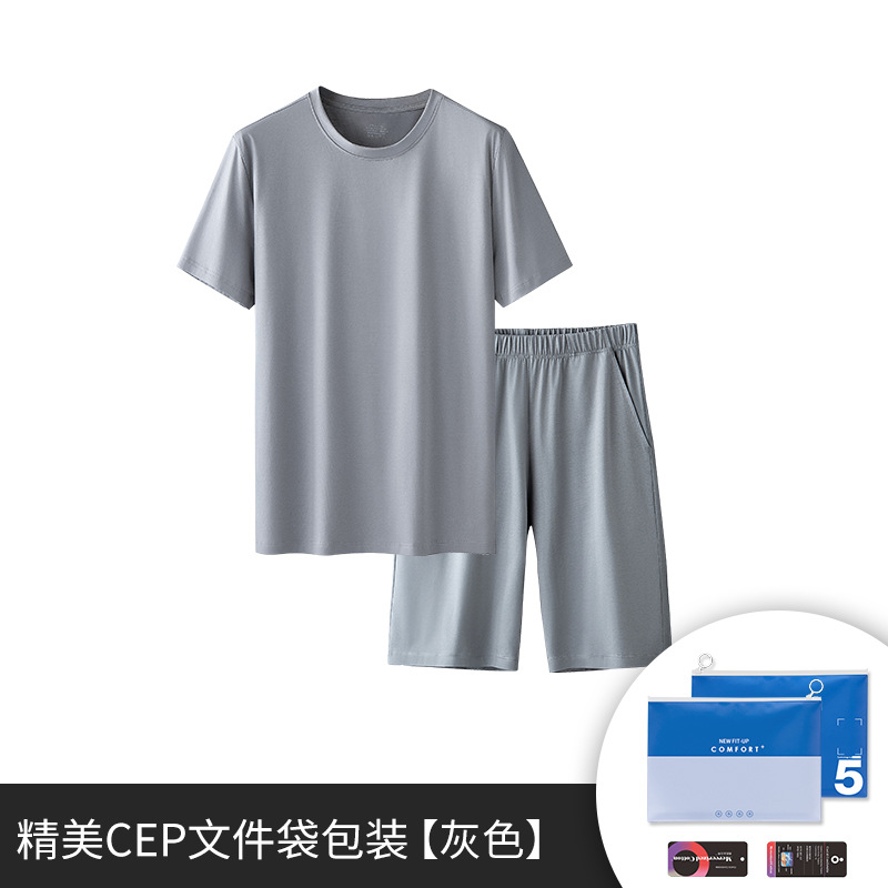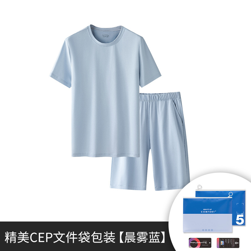 텐셀 코튼 남성 잠옷 남성용 단색 반팔 반바지 외출복 홈웨어 도매 가정용 캐주얼 실크광택