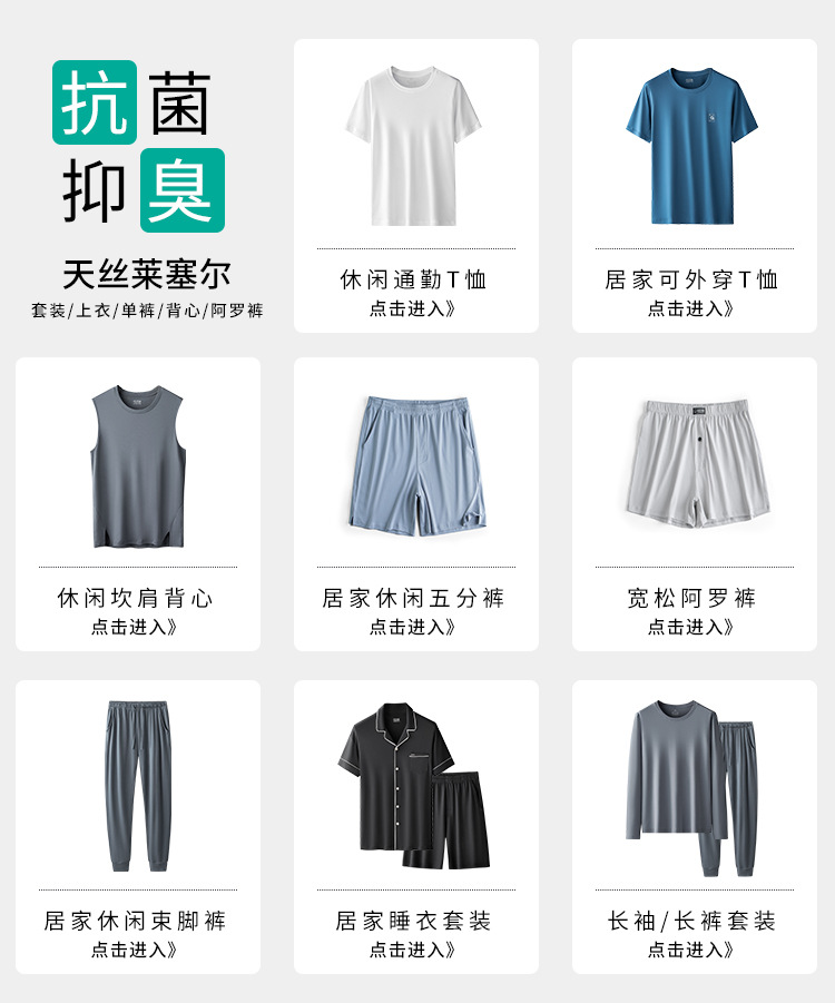 텐셀 코튼 남성 잠옷 남성용 단색 반팔 반바지 외출복 홈웨어 도매 가정용 캐주얼 실크광택스토어 가기
