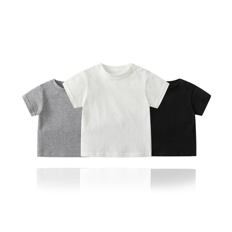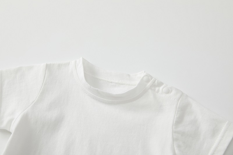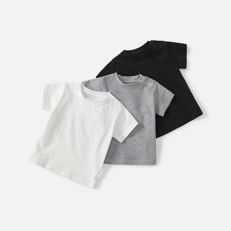 유아 여름 어깨 버클 티셔츠 어린이 단색 면 티셔츠 반소매 옷 아기의 반 소매 기본 셔츠 위 옷스토어 가기