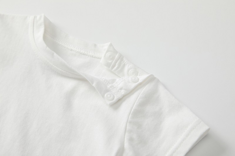 유아 여름 어깨 버클 티셔츠 어린이 단색 면 티셔츠 반소매 옷 아기의 반 소매 기본 셔츠 위 옷