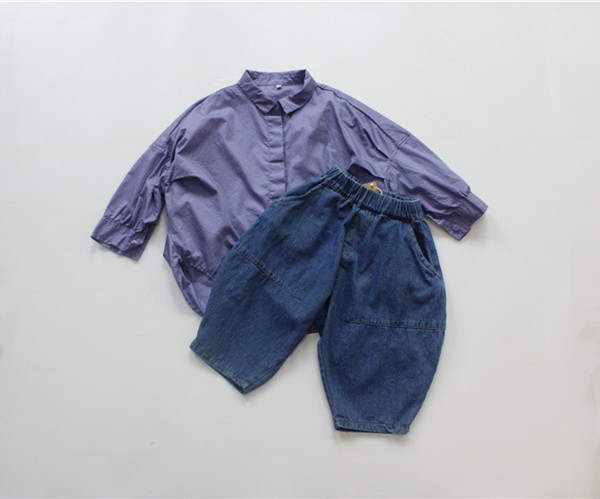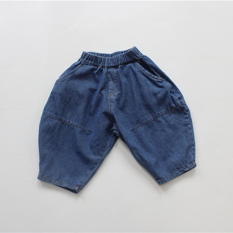 가을 아동용 청바지 여아 바지 한국 스타일 단색 루즈핏 남아용 9부 바지 다용도 패션스토어 가기