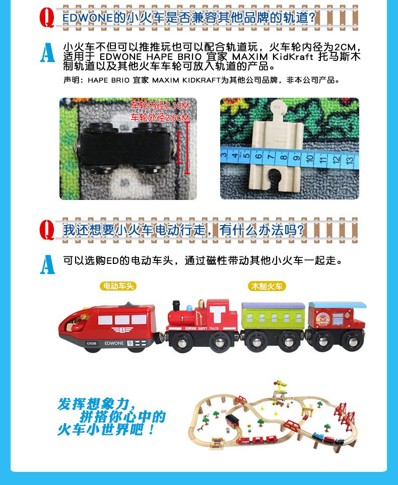 EDWONE 나무 작은 기차 트랙 마그네틱 링크 나무 트랙 어린이 조립 자기 기차 장난감 도매