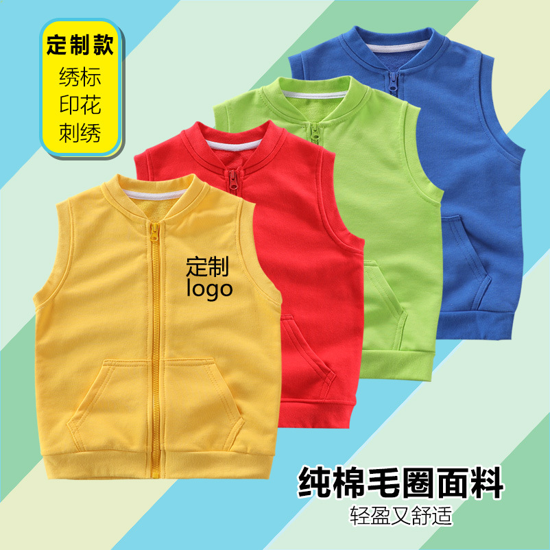 유치원 의류 조끼 인쇄 로고 봄과 가을 얇은 겉옷 남성과 여성 부모-자식 활동 어린이 순면 조끼 재킷