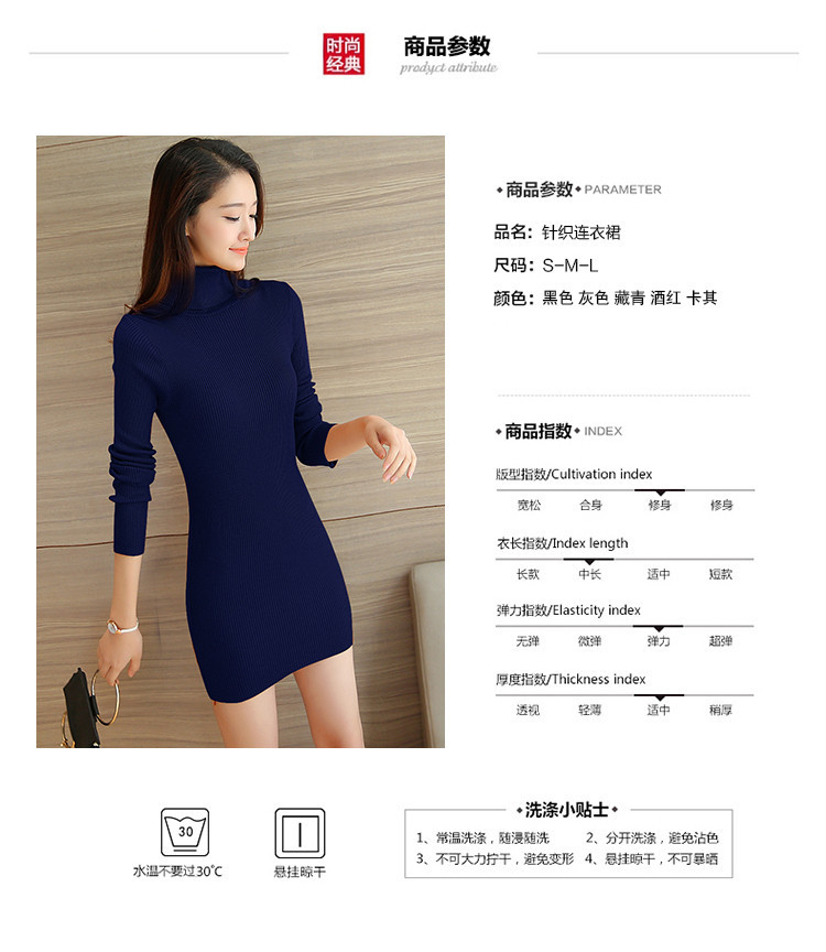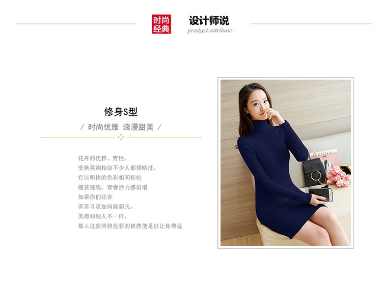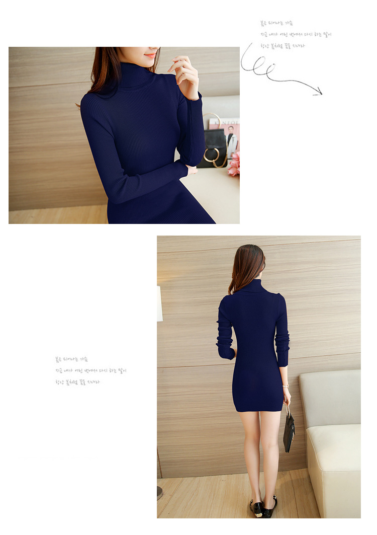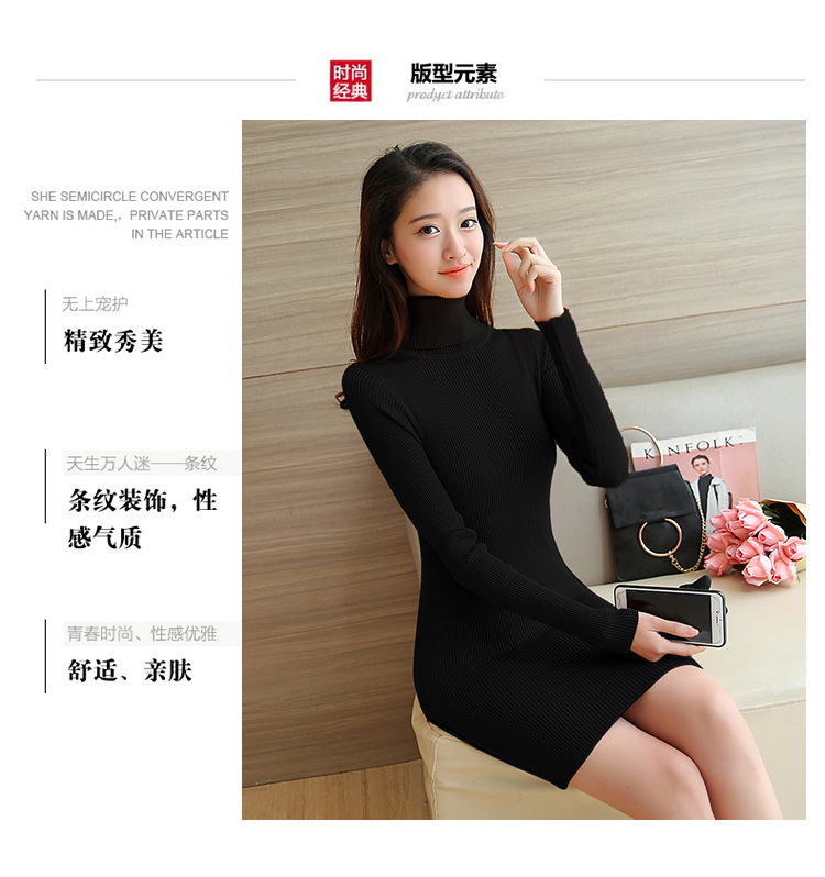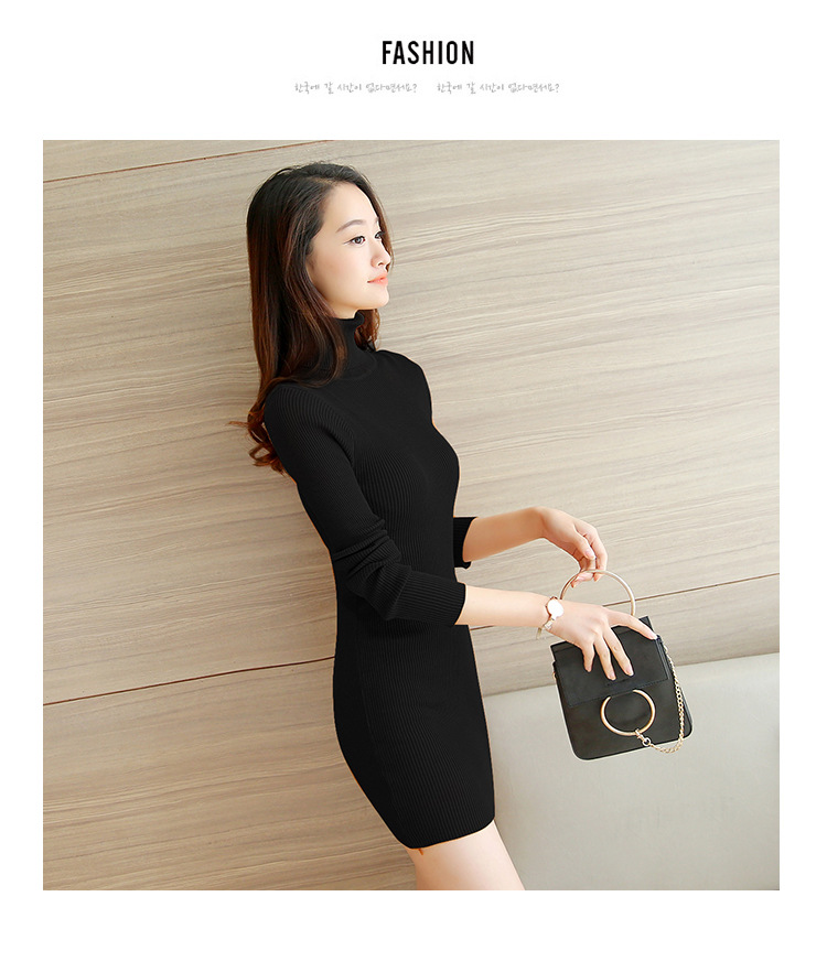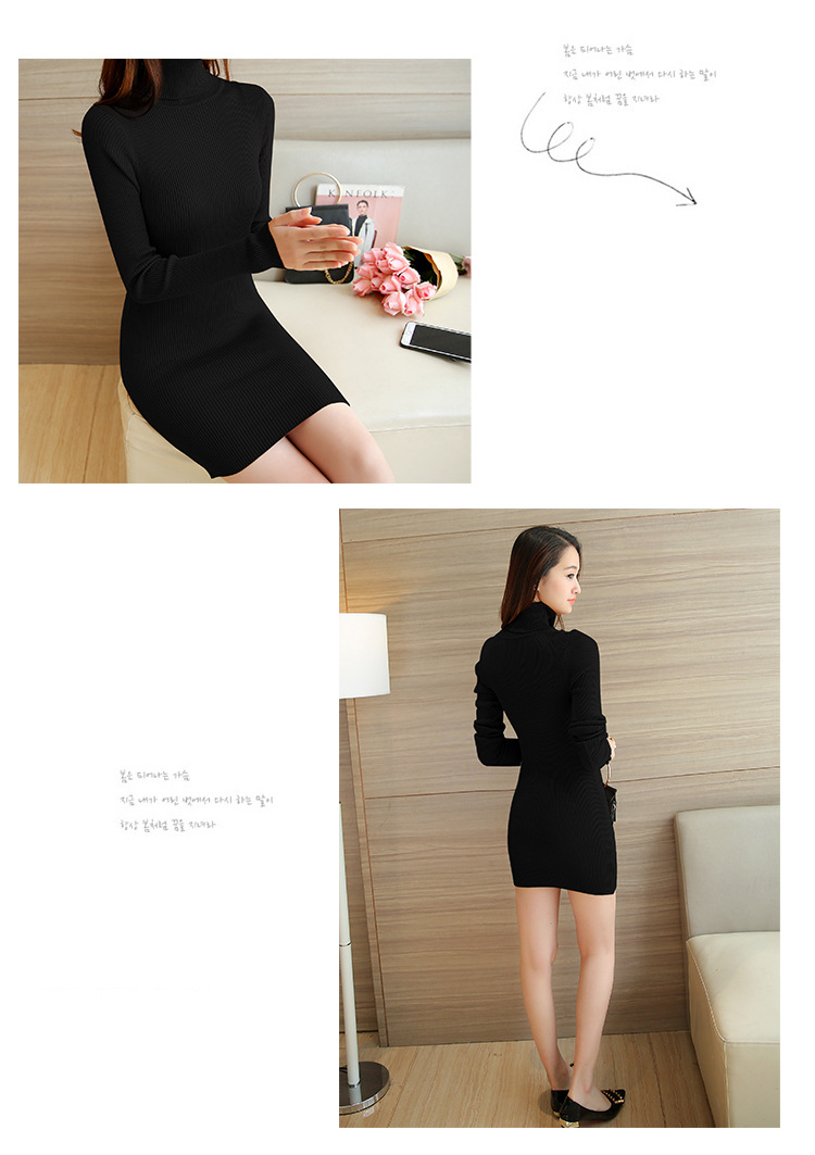 높은 칼라 중간 길이 스웨터 여자의 새해 옷 여자의 베이스 니트웨어 섹시 슬림 핏 원피스 엉덩이스토어 가기
