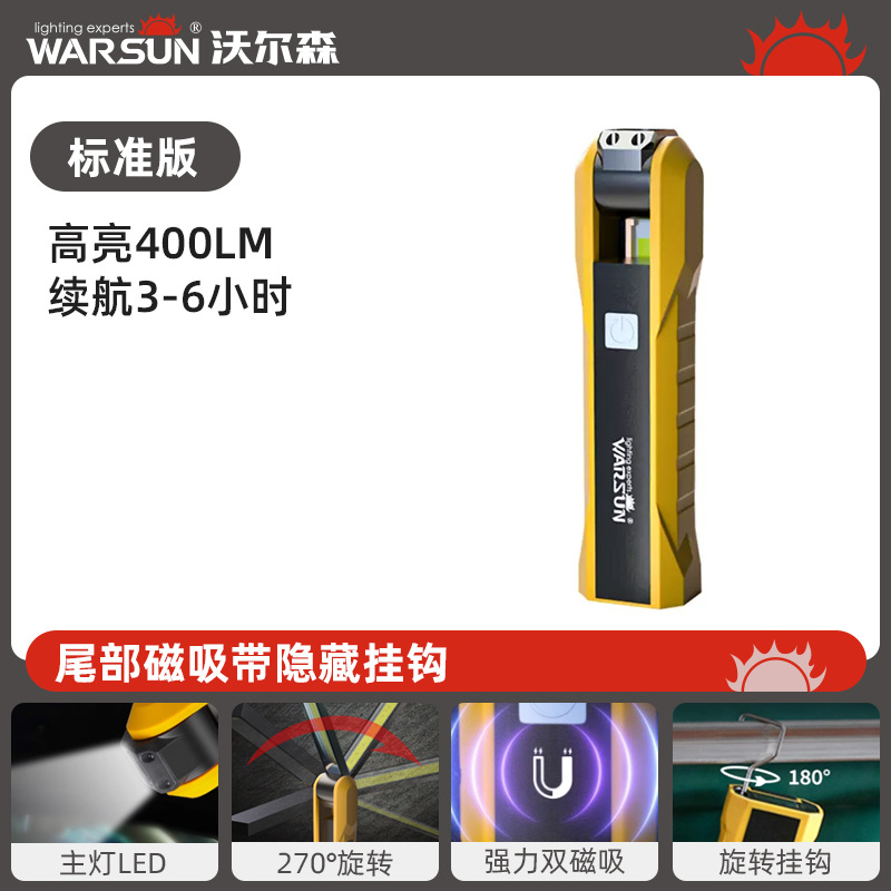 • 기본 버전 400 루멘 (배터리 수명 3-6 시간) 꼬리 자기 테이프 숨겨진 후크