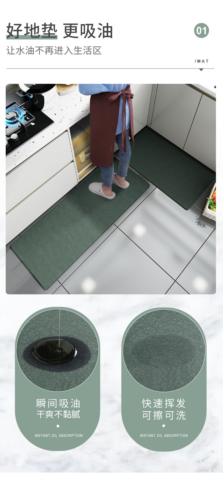 주방 바닥 매트 미끄럼 방지 내유성 마찰 및 세척 없는 가정용 방수 및 내유성 발 매트 방수 및 내유성 카펫 방진 매트스토어 가기