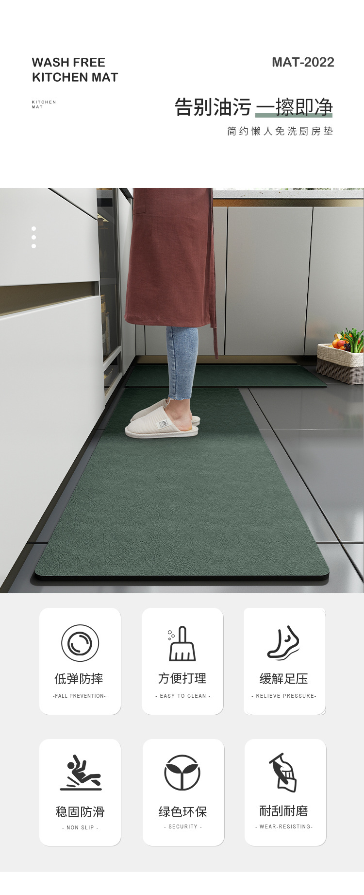 주방 바닥 매트 미끄럼 방지 내유성 마찰 및 세척 없는 가정용 방수 및 내유성 발 매트 방수 및 내유성 카펫 방진 매트