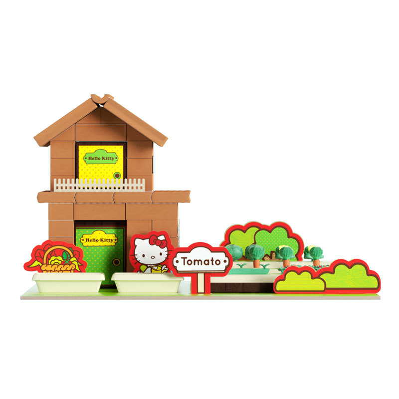 헬로 키티 작은 석공 어린이 건축가 집 건축 장난감 시뮬레이션 미니 벽돌스토어 가기